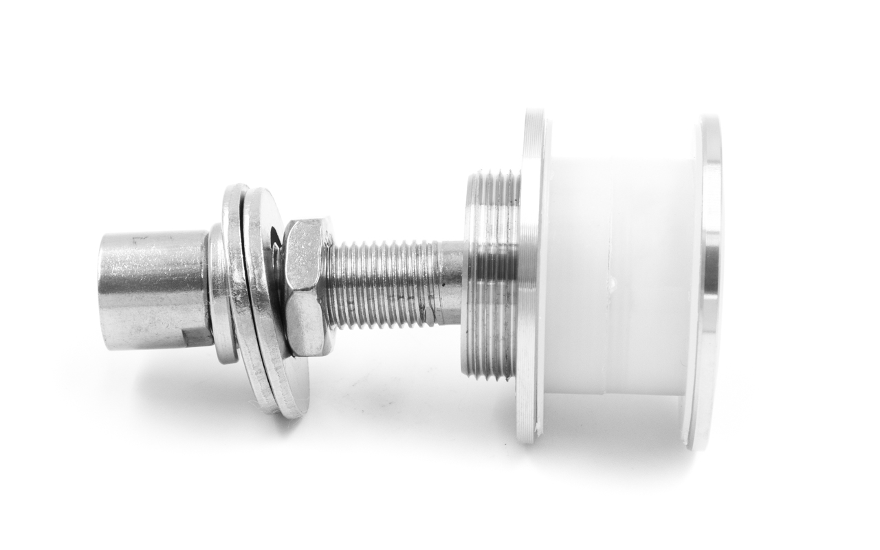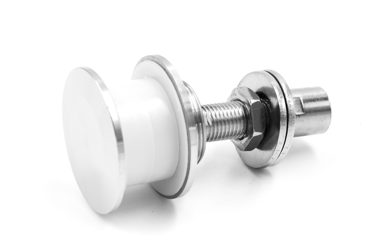 Рутель для вантового крепления козырьков, разборный, под стекло от 10 до 26 мм, полированный, диаметр внешнего кольца 50, шпилька. Марка стали - AISI 316