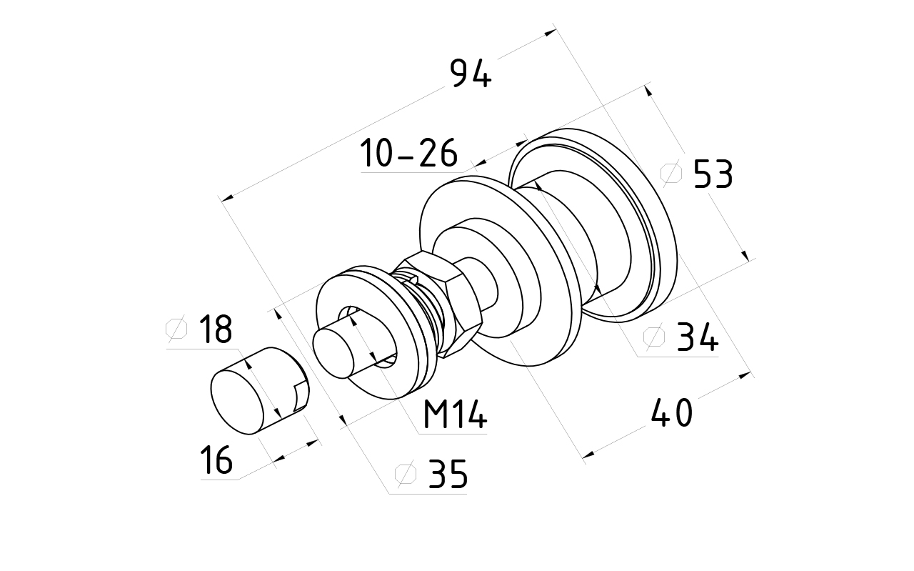 Стеклодержатель регулируемый (рутель) используется для крепления одинарного стекла и триплекса толщиной от 10 до 26 мм. Он используется при спайдерном остеклении, остеклении вертикальных фасадов, при остеклении фасадов, при остеклении вентилируемых фасадов и на наклонном остеклении (крыши, козырьки, навесы) на спайдер системе.