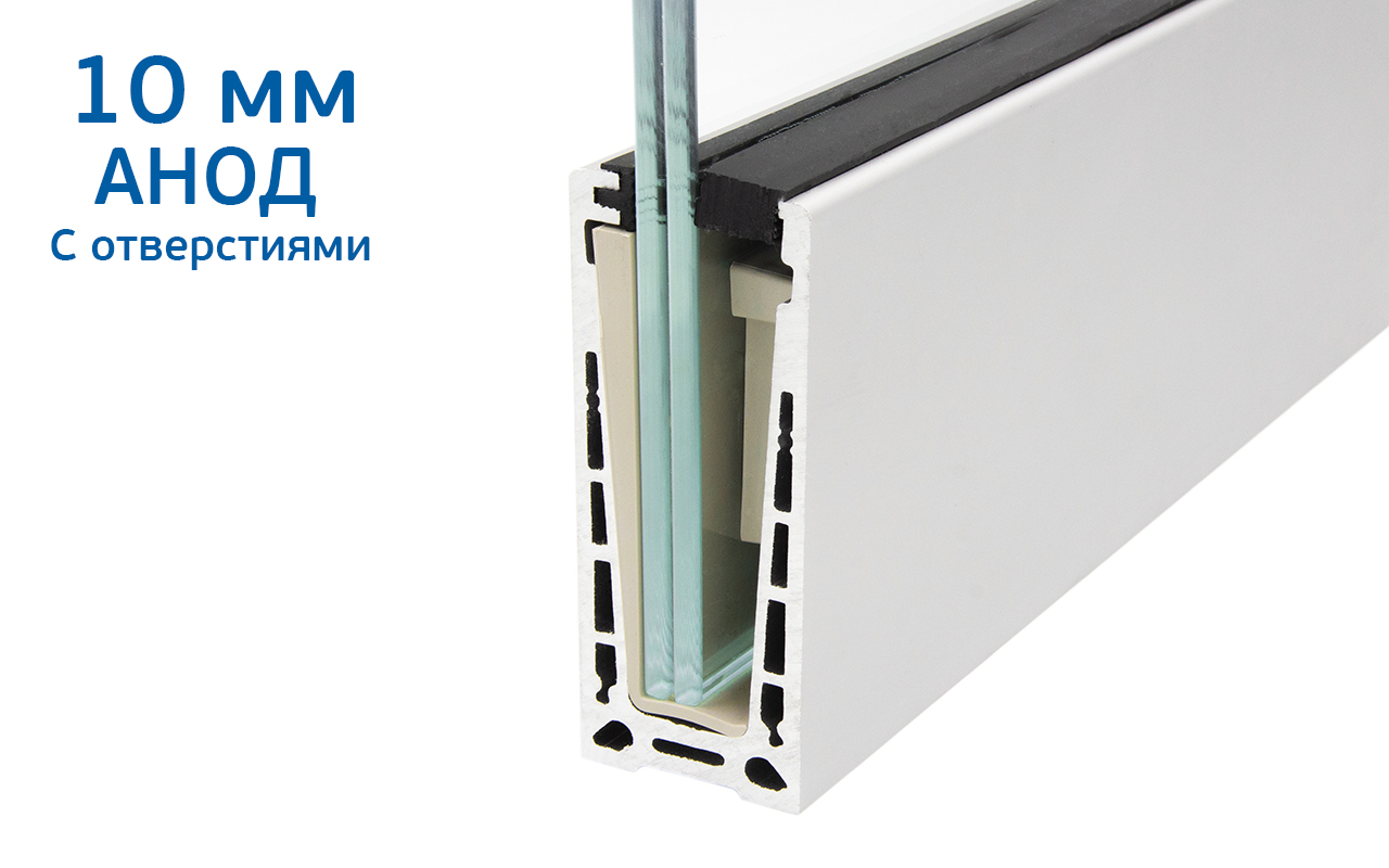 В комплект анодированного профиля под стекло 10мм и 5+5мм входит: