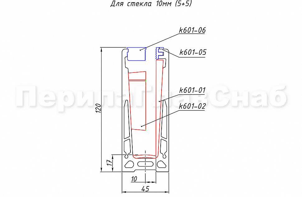 k601 — профиль для ограждений на несущем стекле ( для стеклянных ограждений). Алюминиевый профиль чаще всего используется при строительстве таких объектов, как торговые дома, бизнес-центры, отели, спортивные сооружения. Максимально допустимая высота ограждения может доходить до 1200 мм, боковая нагрузка – до 430 кг.