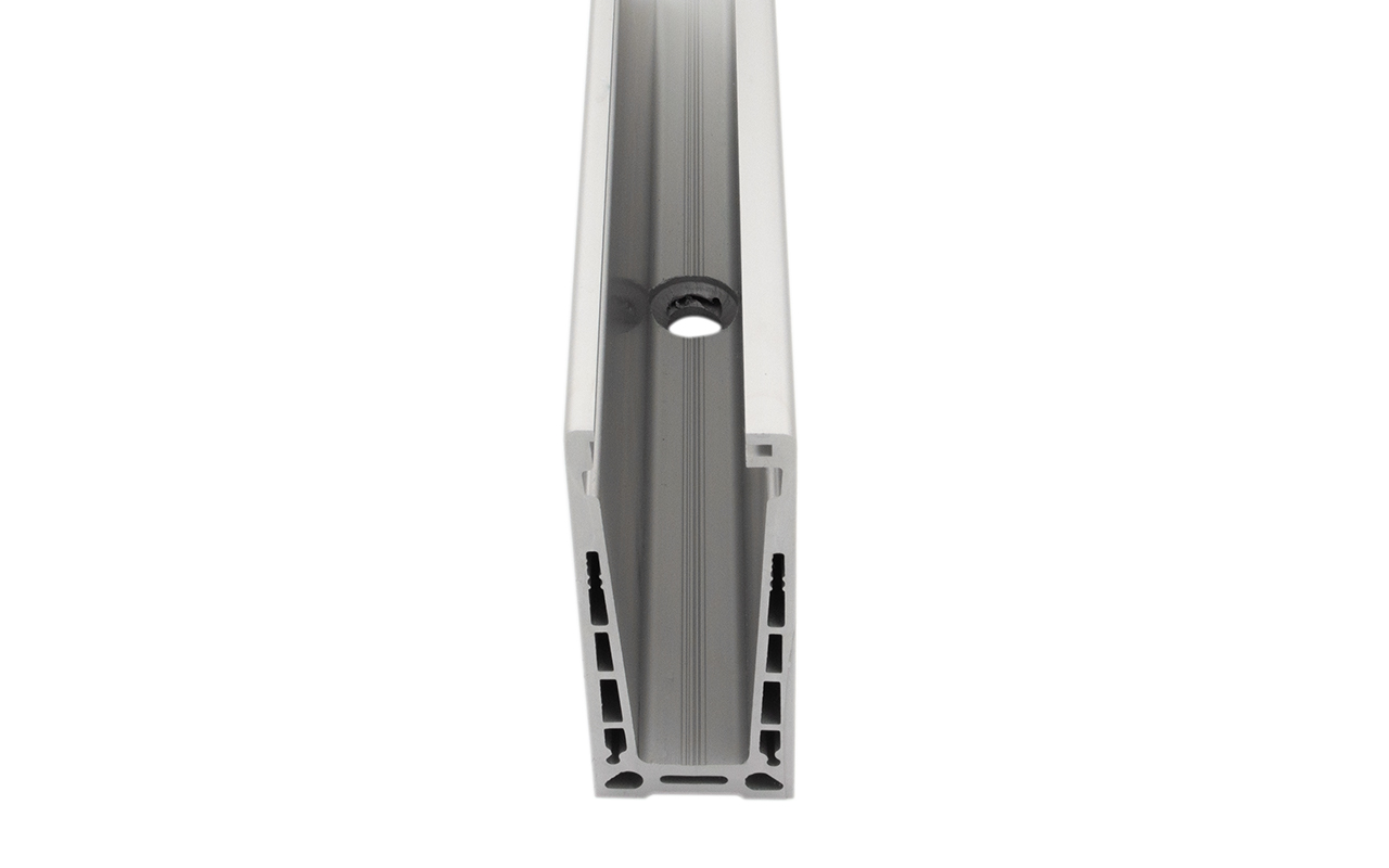 k601 — профиль для ограждений на несущем стекле (для стеклянных ограждений). Алюминиевый профиль чаще всего используется при строительстве таких объектов, как торговые дома, бизнес-центры, отели, спортивные сооружения. Максимально допустимая высота ограждения может доходить до 1200 мм, боковая нагрузка – до 430 кг. В данной модификации профиля предусмотрены крепежные отверстия.Наличие крепежных отверстий гарантирует более удобную и быструю установку профиля на объекте.