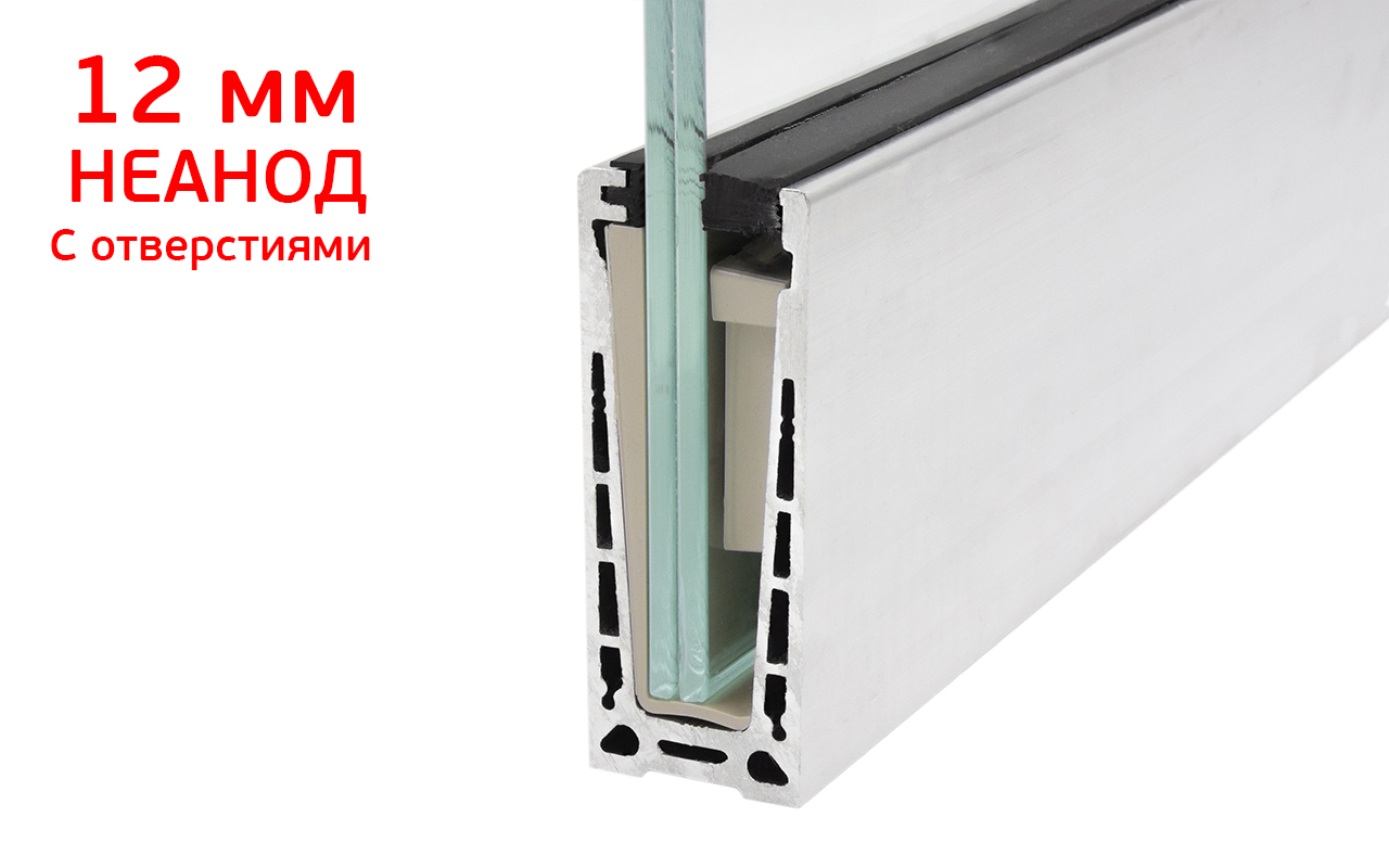 В комплект неанодированного профиля под стекло 12мм и 6+6мм входит: