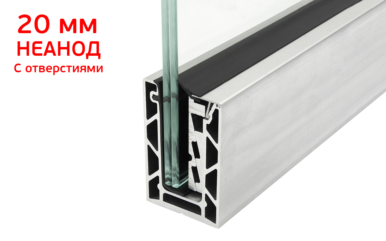 Комплект профиля зажимного для стекла 20мм и 10+10, с отверстием, НЕАНОД. алюминий 100х60мм, т100-2-20