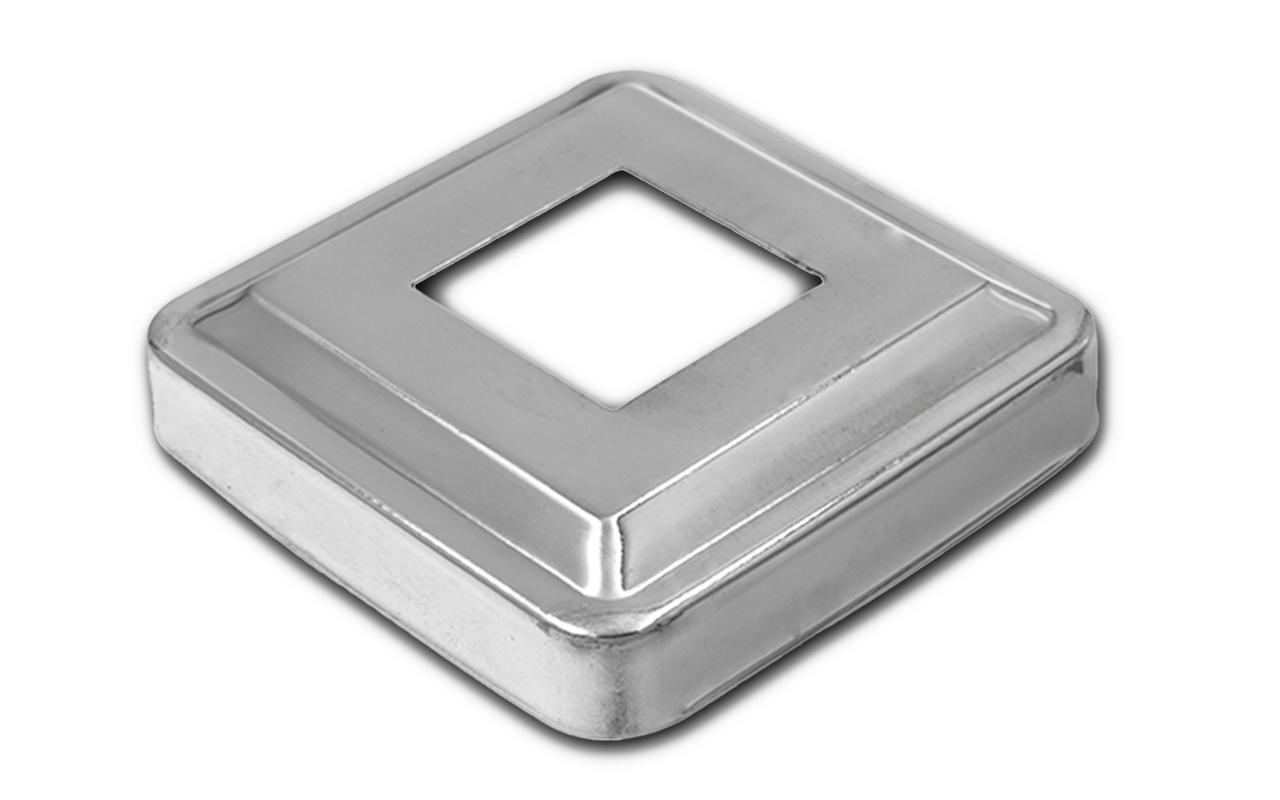 Низ стойки фигурный под трубу 50х50 мм, 83х83х0.5 мм, высота 17 мм, полированный (AISI 304) k375 купить в Челябинске