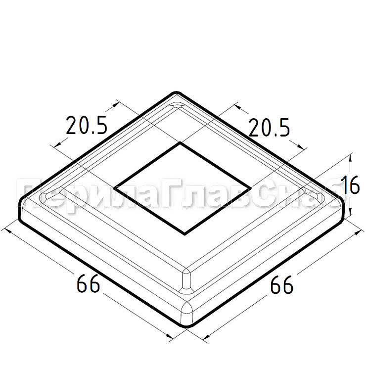 Низ стойки под трубу 20х20 мм, 66х66, высота 16 мм