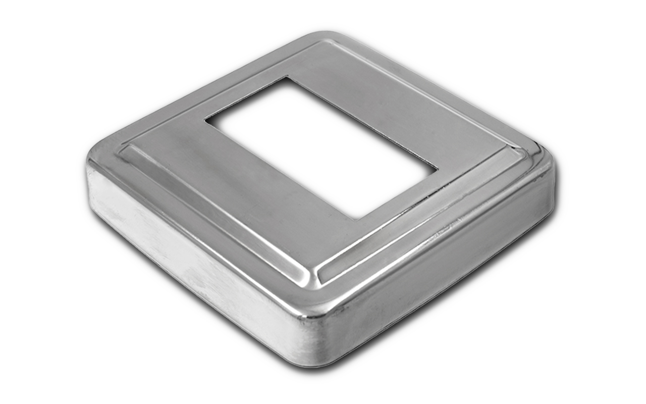 Низ стойки фигурный под трубу 50х50 мм, 83х83х0.5 мм, высота 17 мм, полированный (AISI 304) k375 купить в Челябинске