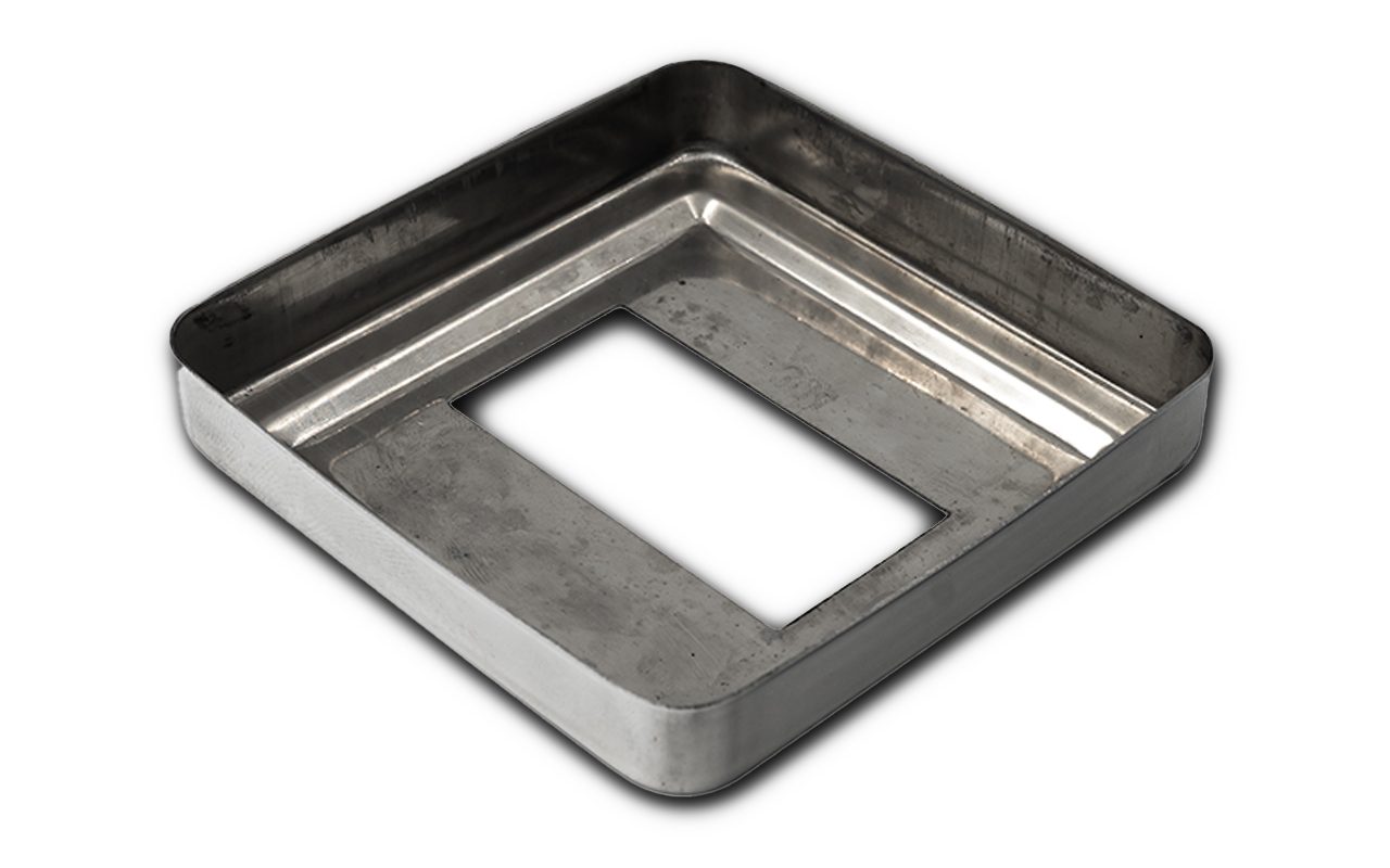 Низ стойки фигурный под трубу 50х50 мм, 83х83х0.5 мм, высота 17 мм, полированный (AISI 304) k375