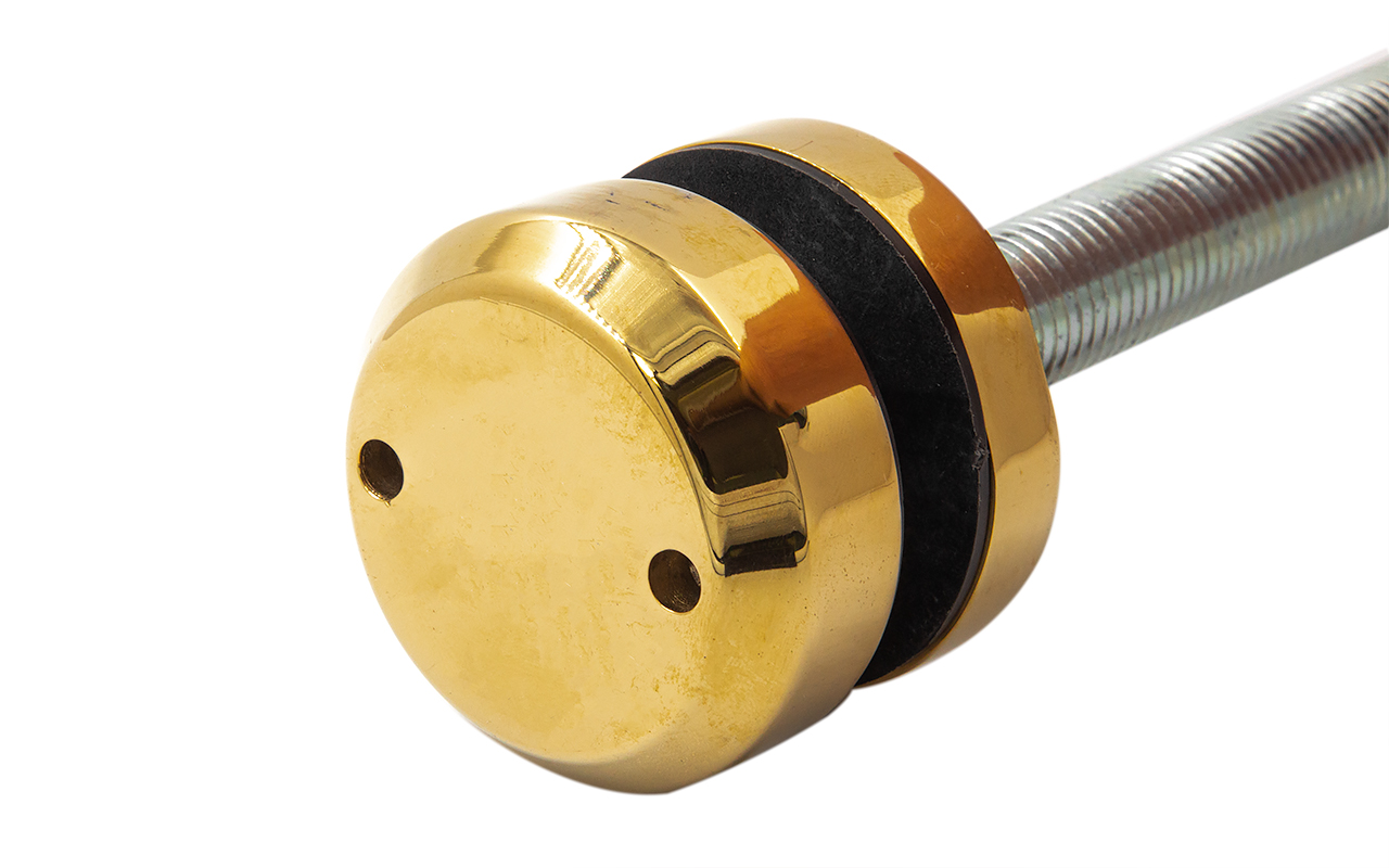 Комплект торцевого крепления несущего стекла, гайка-шайба диаметром 50х10х18 мм с внутренней резьбой М16. Комплект полированный с покрытием нитрида титана под золото, материал - AISI 201