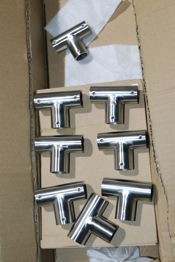 Труба вставляется в тройник со всех сторон и фиксируется с помощью шестигранника
