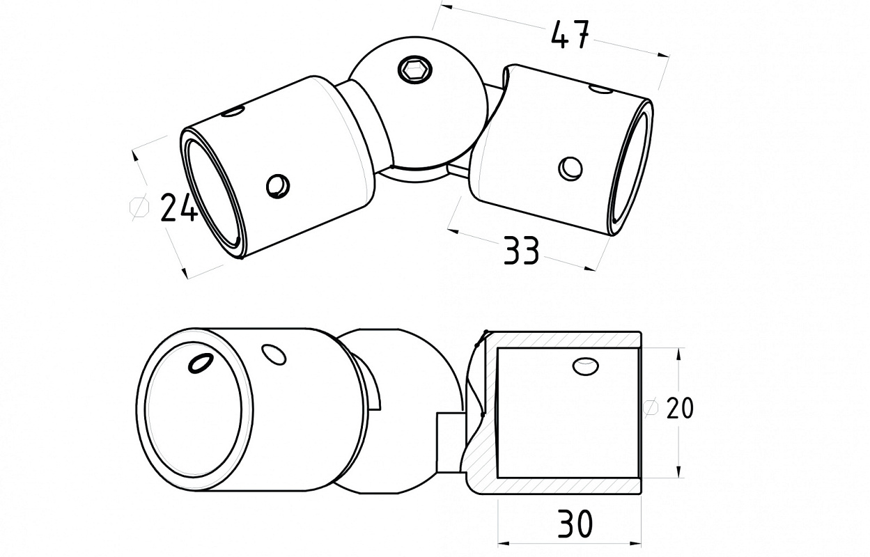 Соединитель трубы диаметром 19 мм, шарнирный. Материал - цинк, цвет - черный