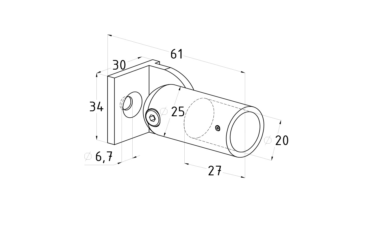 Коннектор предназначен для крепления труб Ø19 мм к стене под произвольным углом при монтаже верхней обвязки душевых кабин.