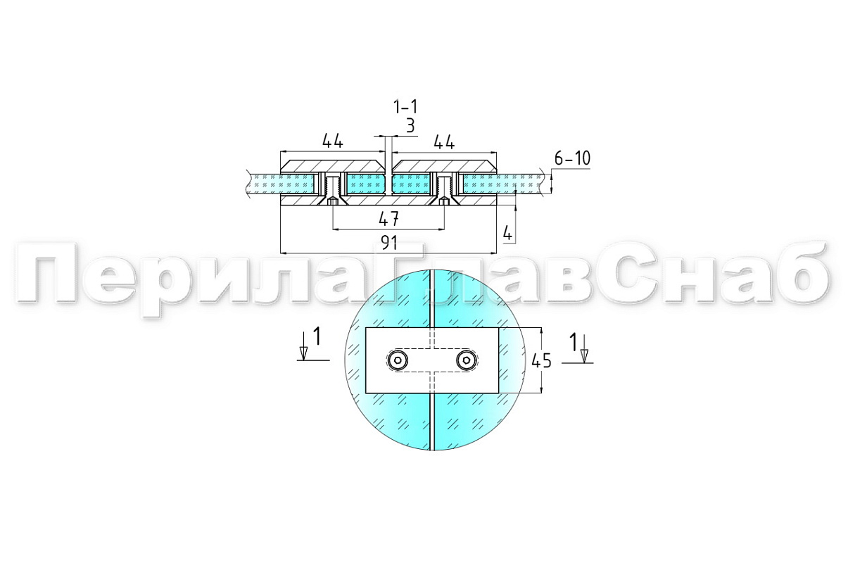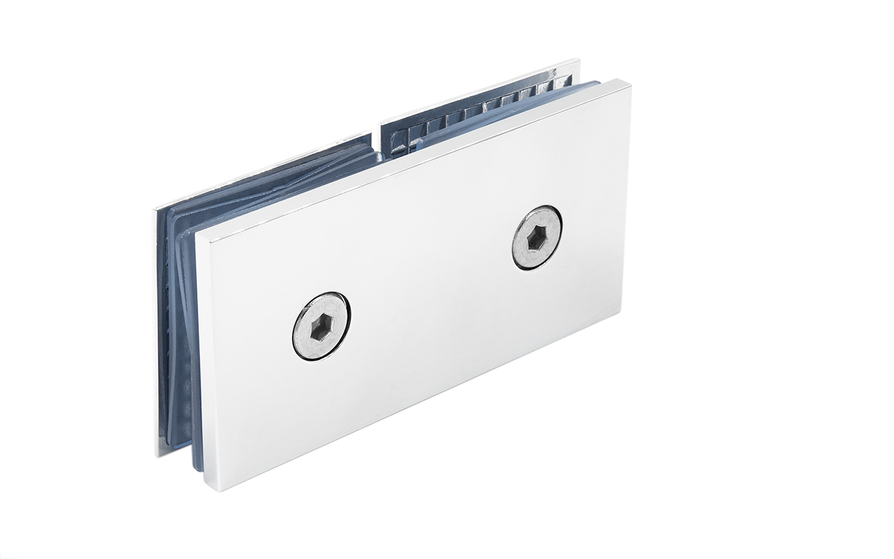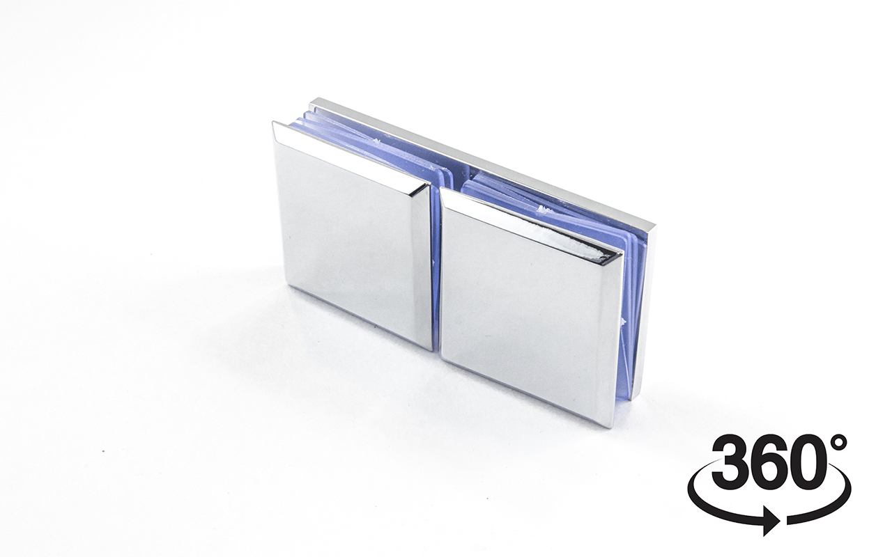 Коннектор для душевой кабины стекло-стекло 180°, 45х45 мм. Материал детали - латунь-хром, поверхность - полированная