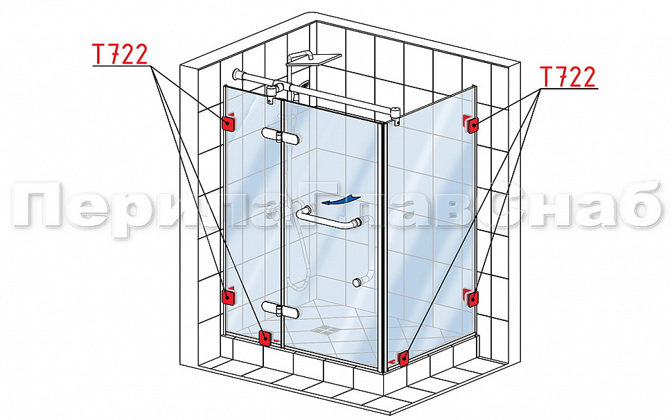 Комплект раздвижной системы для стеклянной душевой, нержавеющая сталь AISI 304, полированная t401 PSS купить в Челябинске