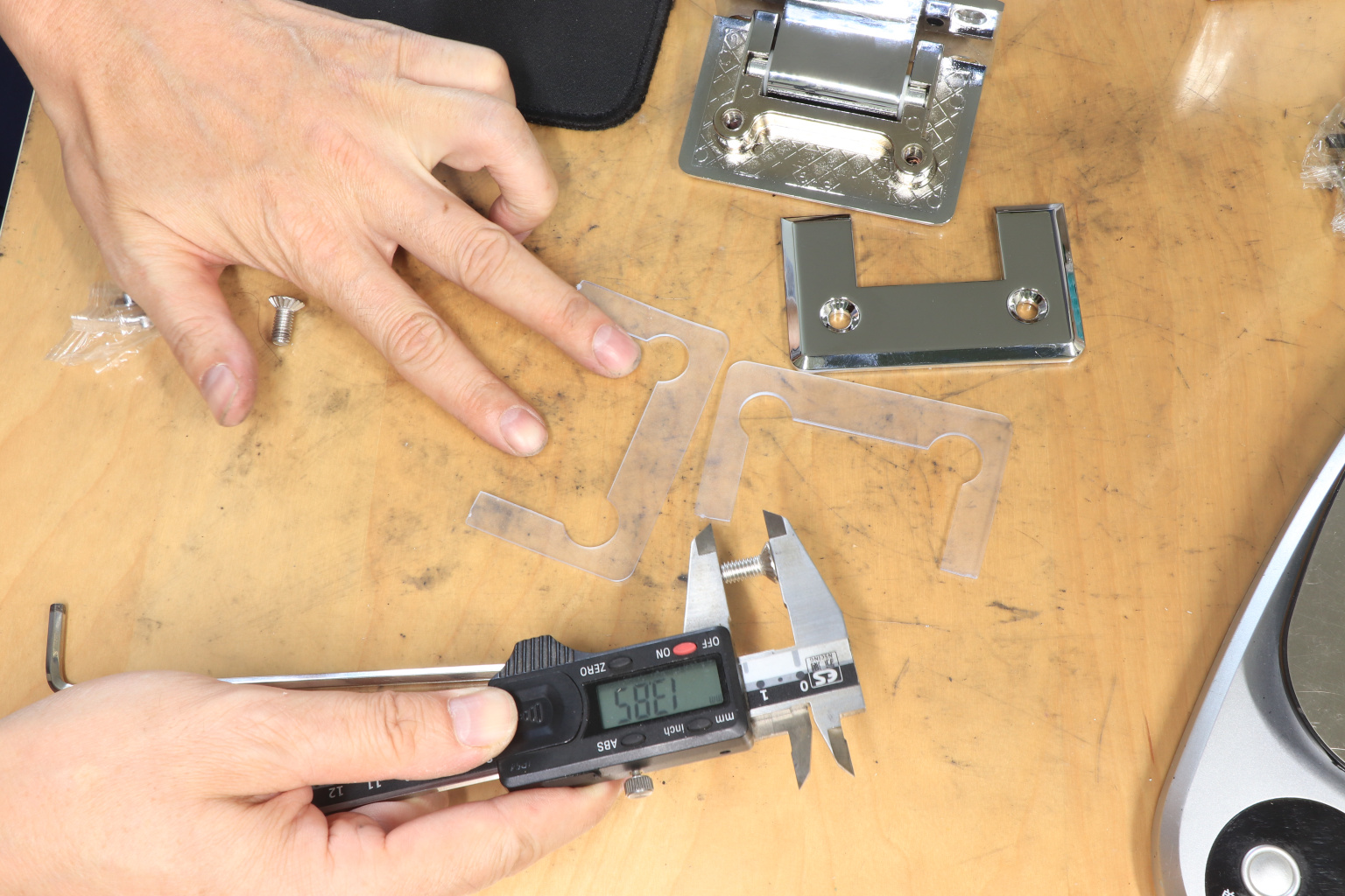 Петля из нержавеющей стали с полированной поверхностью из нержавеющей стали предназначена для стыковки между собой конструкционных элементов из стекла, толщина которых находится в диапазоне от 8 до 10 мм. Максимальный вес двери на 2 петли составляет 45 кг. В конструкции заложена система скрытого крепежа. Имеет функцию доводчика до закрытия от 25°. Максимальный угол разведения стыковочных элементов в плане составляет 90°. Крепление предусмотрено с двух сторон на 4 винта со шляпками заподлицо (по 2 винта на каждую сторону). Размер одной стороны петли составляет 90х55 мм.