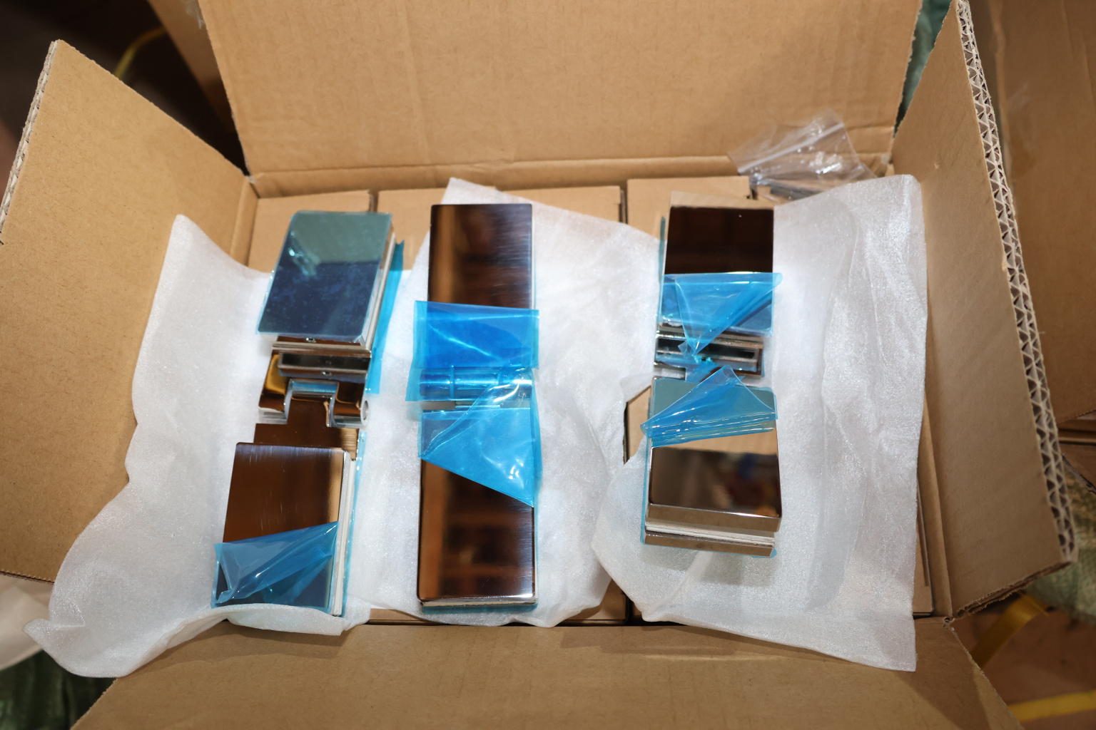 Петля для душевой кабины стекло-стекло, поверхность - полированная, выдерживает нагрузку 35 кг на две петли, марка стали - AISI 304.