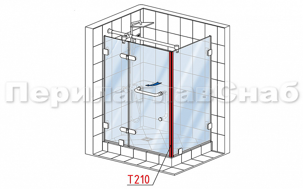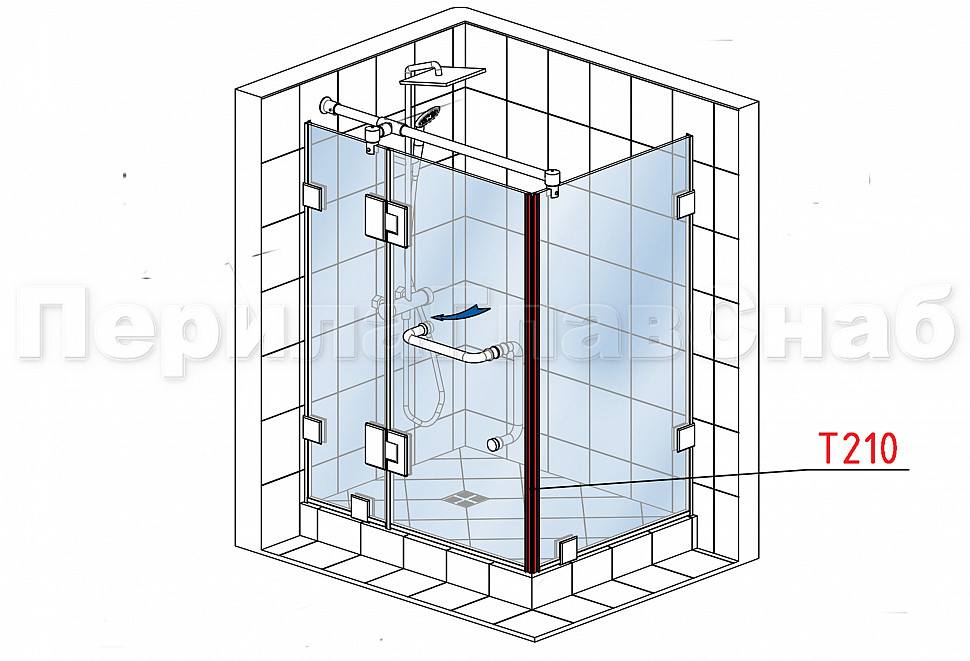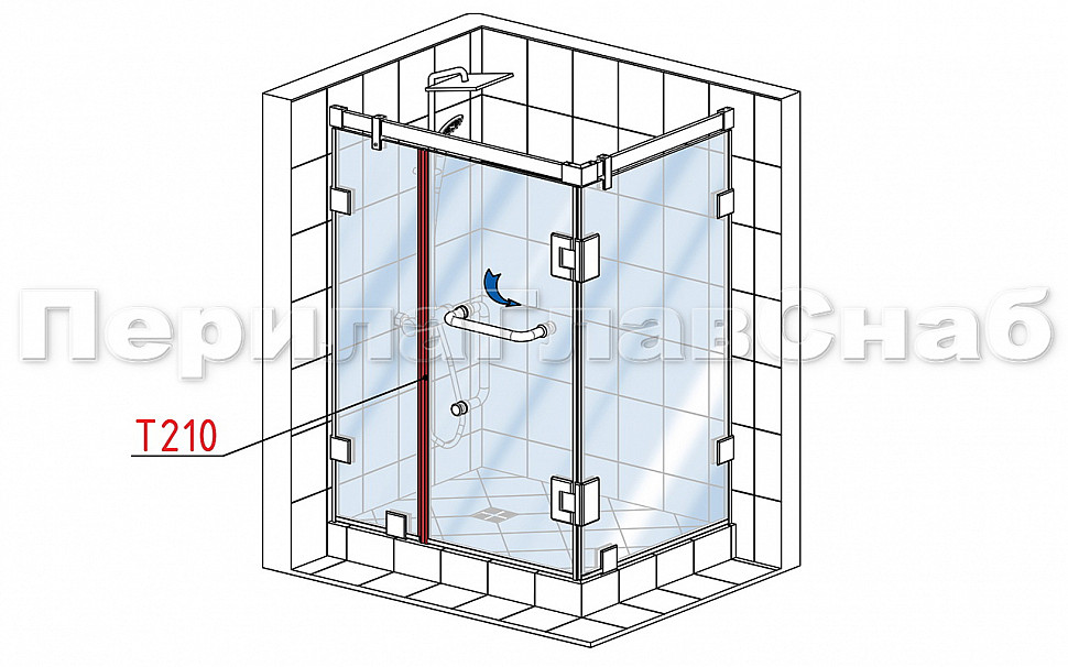 Комплект уплотнителей для стекла в душевую кабину (2 шт.), стекло-стекло 8 мм, с магнитом 90°/180°, 2200 мм t210