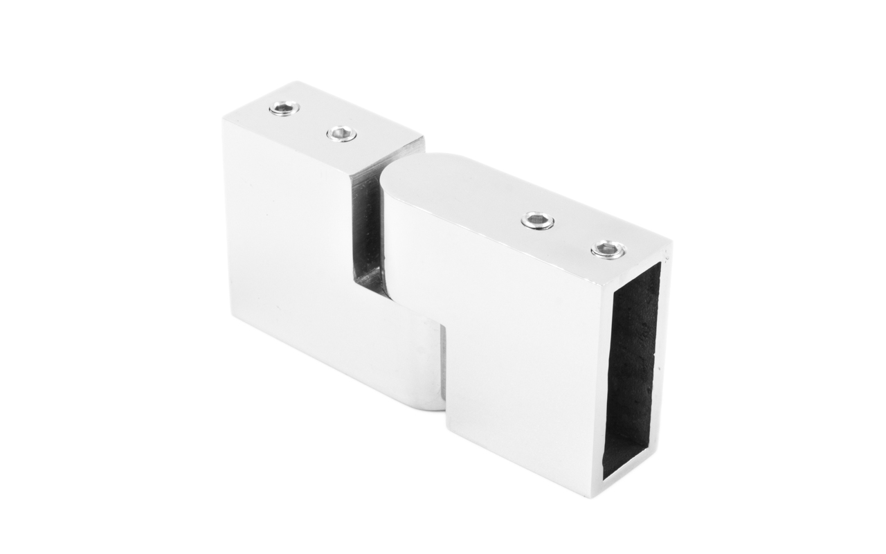 Коннектор предназначен для соединения между собой профильных труб 30х10 в вертикальной ориентации, под произвольным углом при монтаже штанг верхней обвязки душевых кабин