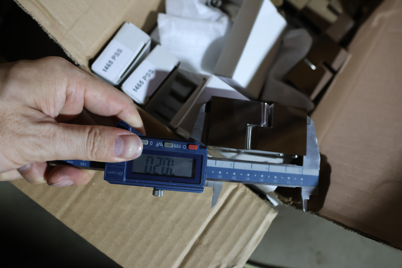 Коннектор для трека 30х10 мм регулируемый. Поверхность детали - полированная. Марка стали - AISI 304