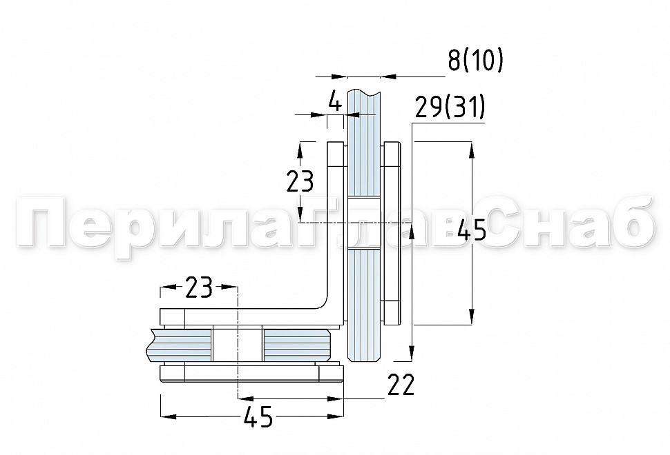 Коннектор для душевой кабины стекло-стекло 90° 45х45 мм латунь-хром, полированный t725 PC