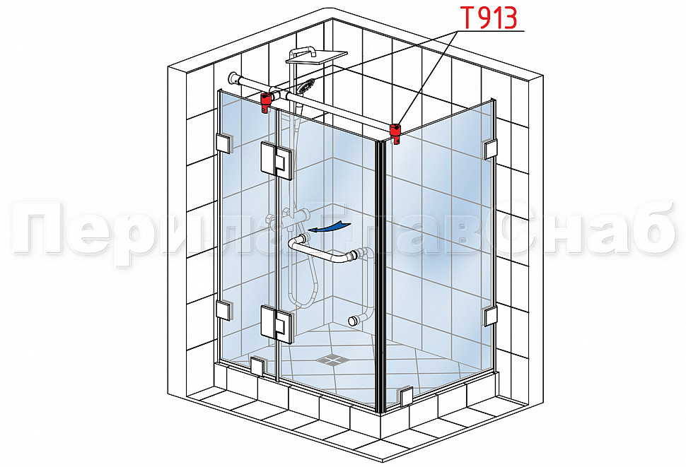 Комплект раздвижной системы для стеклянной душевой, нержавеющая сталь AISI 304, полированная t401 PSS купить в Челябинске