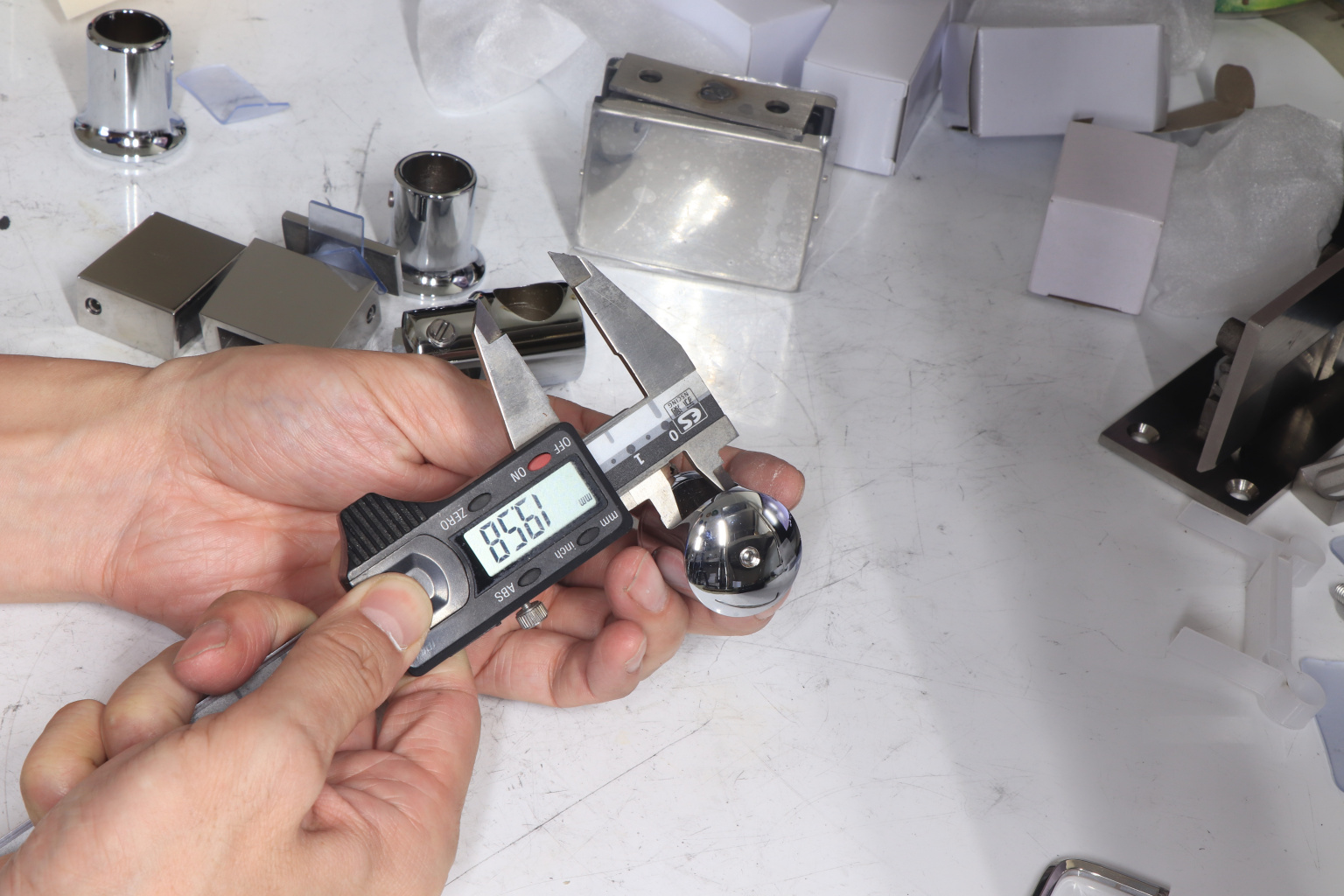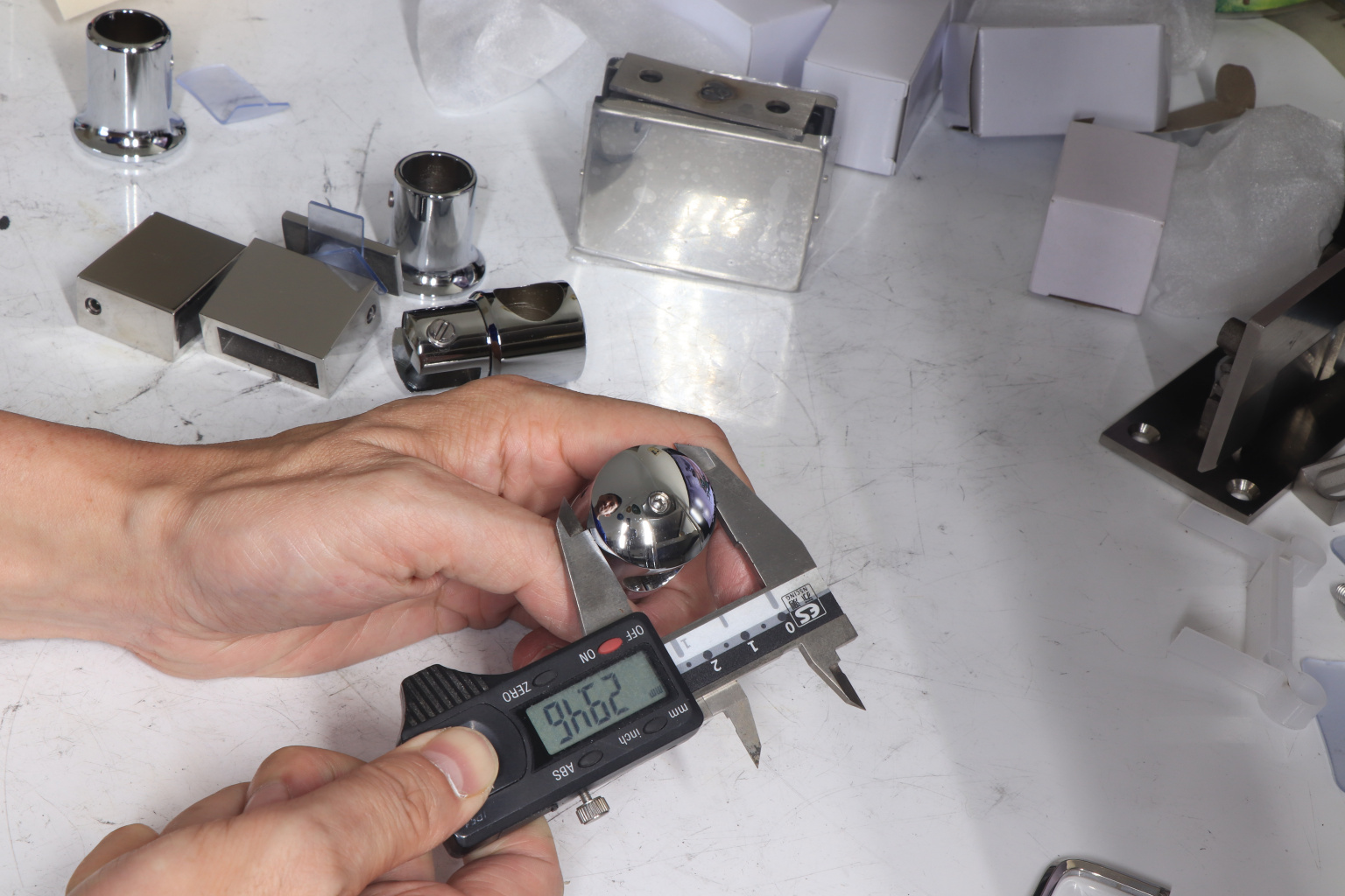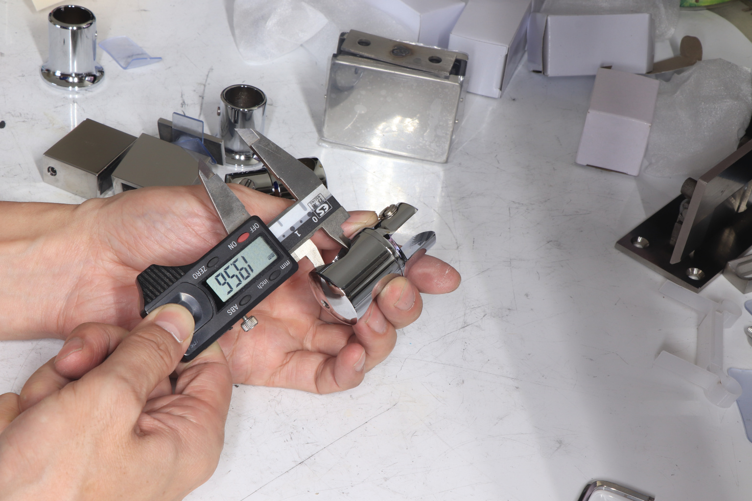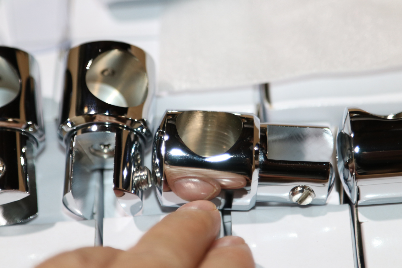 Крепежный элемент труба-стекло. Основная задача соединить окончание трека с кромкой стекла. Материал - цинк-хром, поверхность - полированная