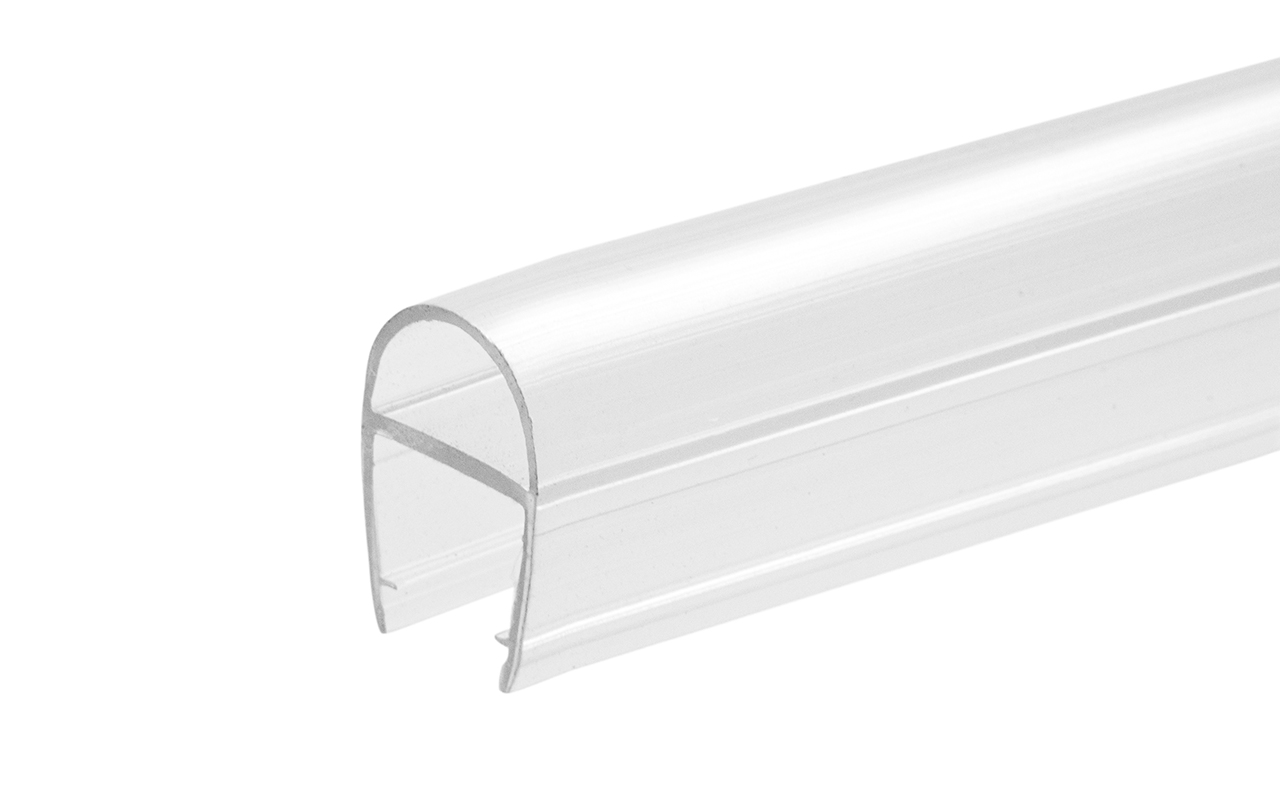 Профиль уплотнительный дверь-стена, прозрачный ПВХ 1.5 мм, для стекла 10 мм. Длина 2200 мм.