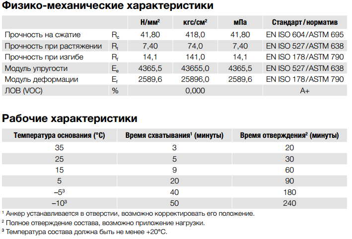 - Время схватывания мин +25°С / 3 мин –5°С / 50 мин
