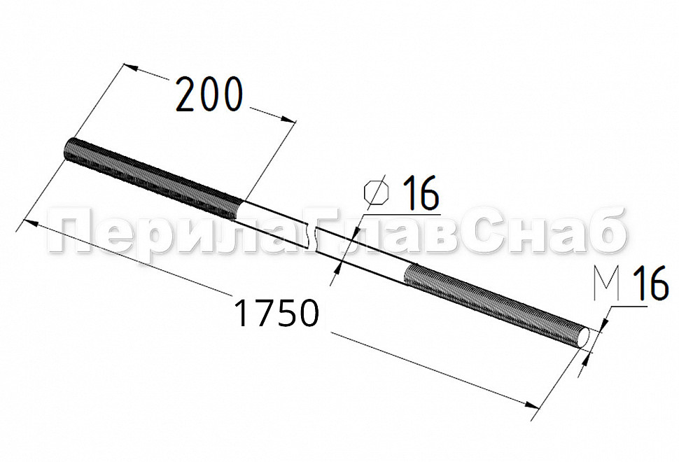 Вант(тяга) для козырька резьба по 195мм с каждой стороны левая и правая М16. Длина детали 1750мм. Марка стали - AISI 304