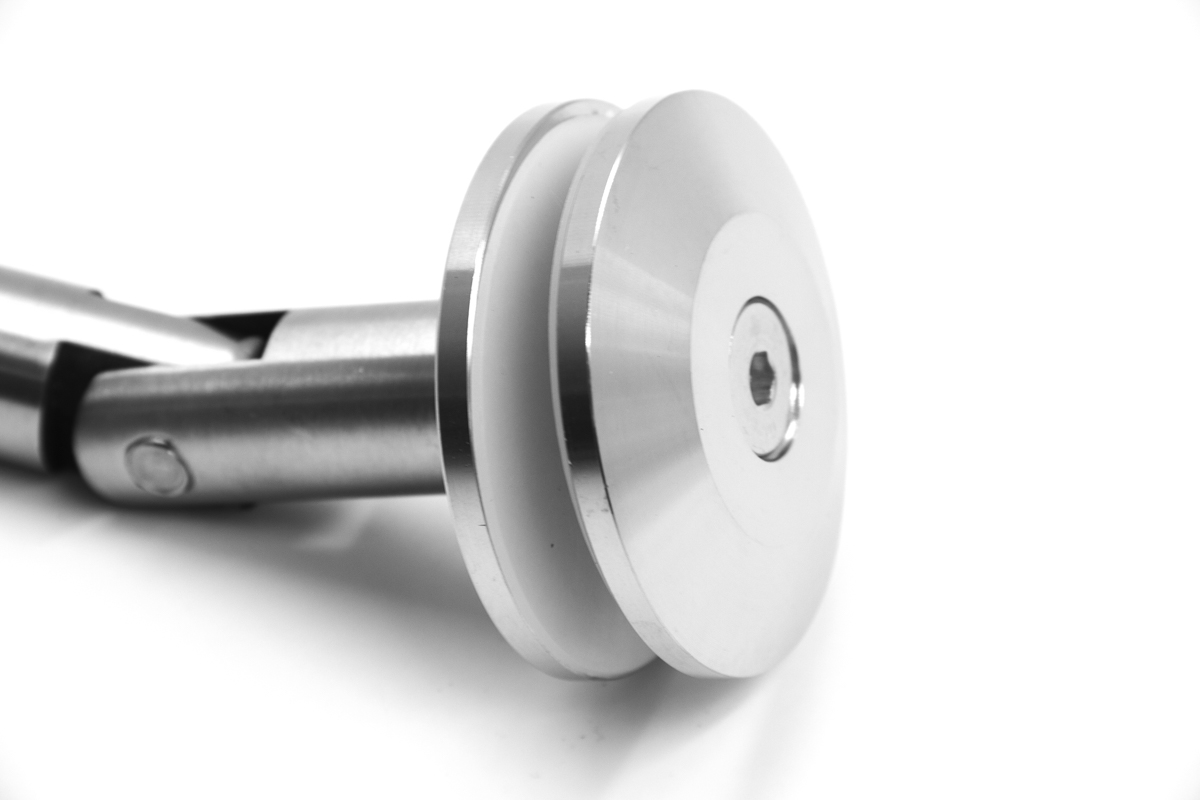 узел крепления стекла к стене, поверхность шлифованная, марка стали AISI 304.