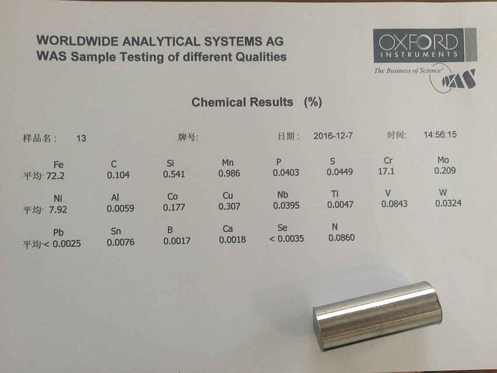 Ванта (тяга) для козырька с резьбой М16. Длина детали - 1800 мм. Марка стали - AISI 304