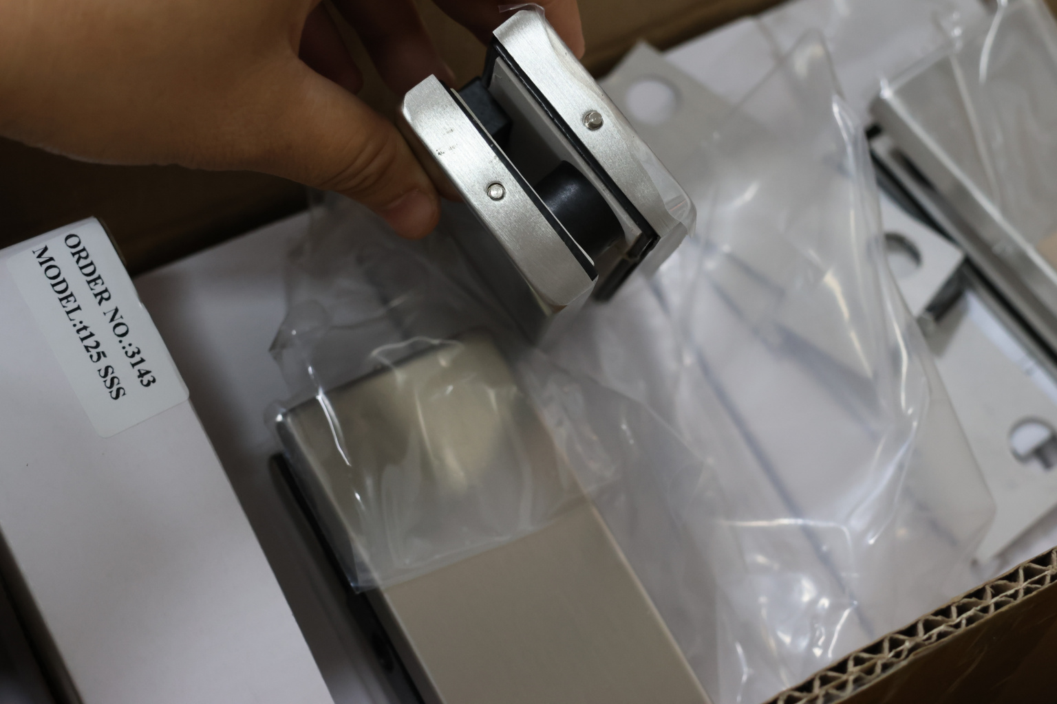Фитинг разбирается на две части, одна часть фиксируется в специально заготовленные вырезы в стеклах и второй затягивается фитинг. После обратно надеваются крышки и готово