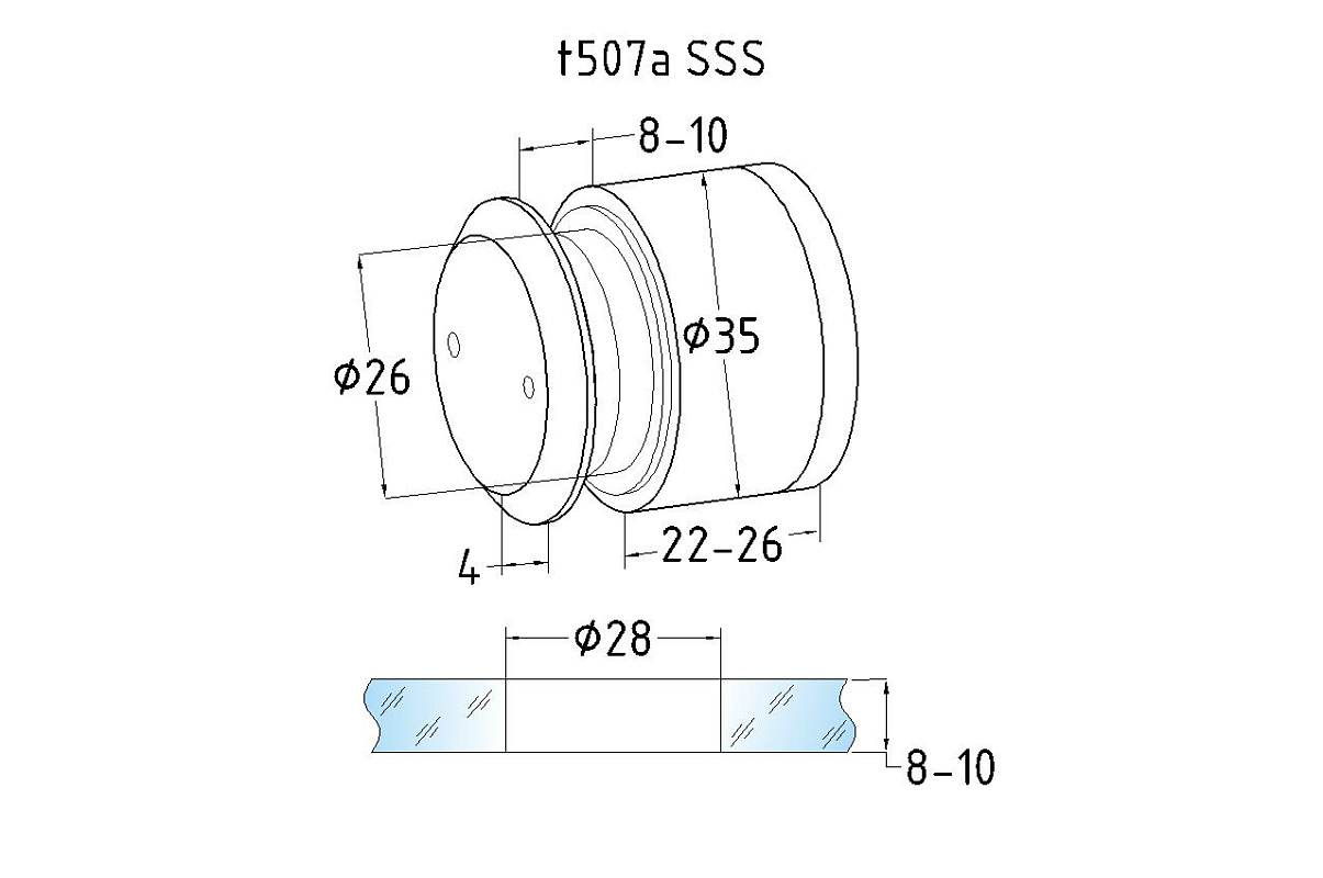 Точечный стеклодержатель 22-26 мм, регулируемый, без зенковки, для стекла 8-10 мм t507A SSS