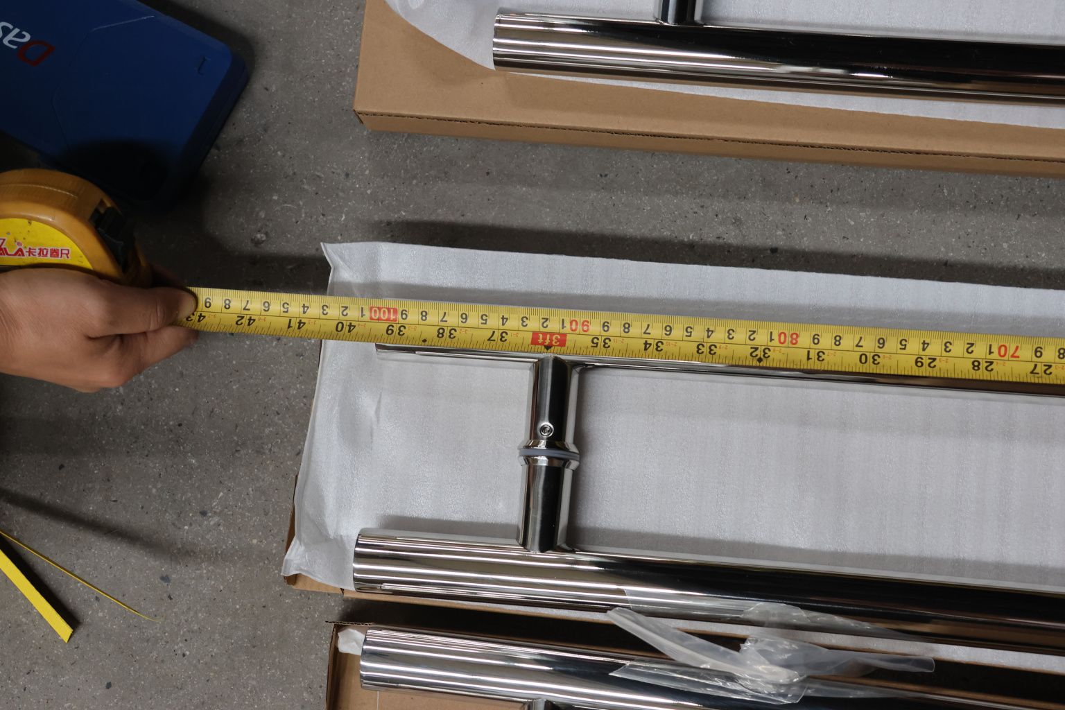 Ручка для стеклянной двери рейлинг двухсторонняя для стекла 8-12 мм, 32х825х1000 мм, полированная, марка стали- AISI 304