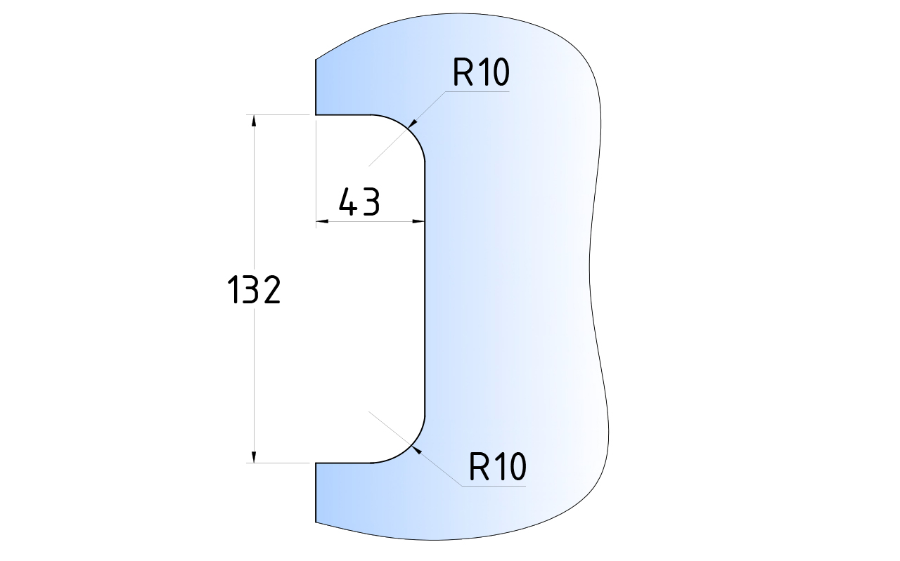 Замок центральный с прямоугольным ригелем, полированный, вырез 13