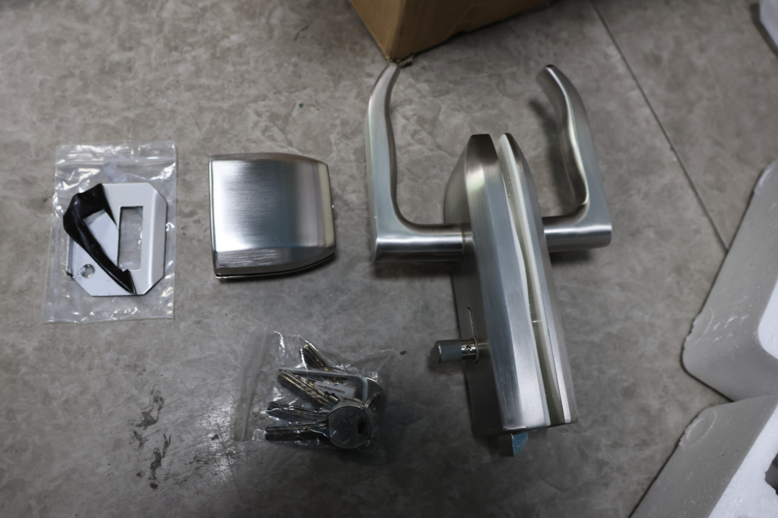 Замок для стеклянной двери с нажимной ручкой без притвора, евроцилиндр односторонний ключ/защелка, в комплекте ответная часть на стекло t155 SSS