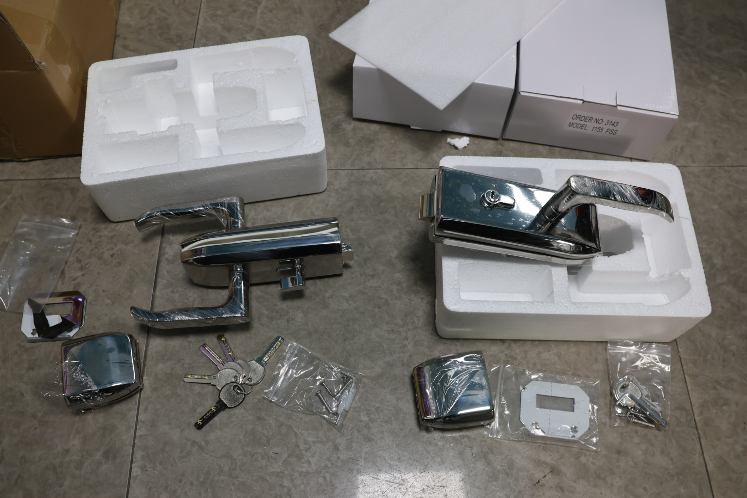 Замок с нажимной ручкой, евроцилиндр односторонний ключ/защелка, с ответной частью на стекло, полированный