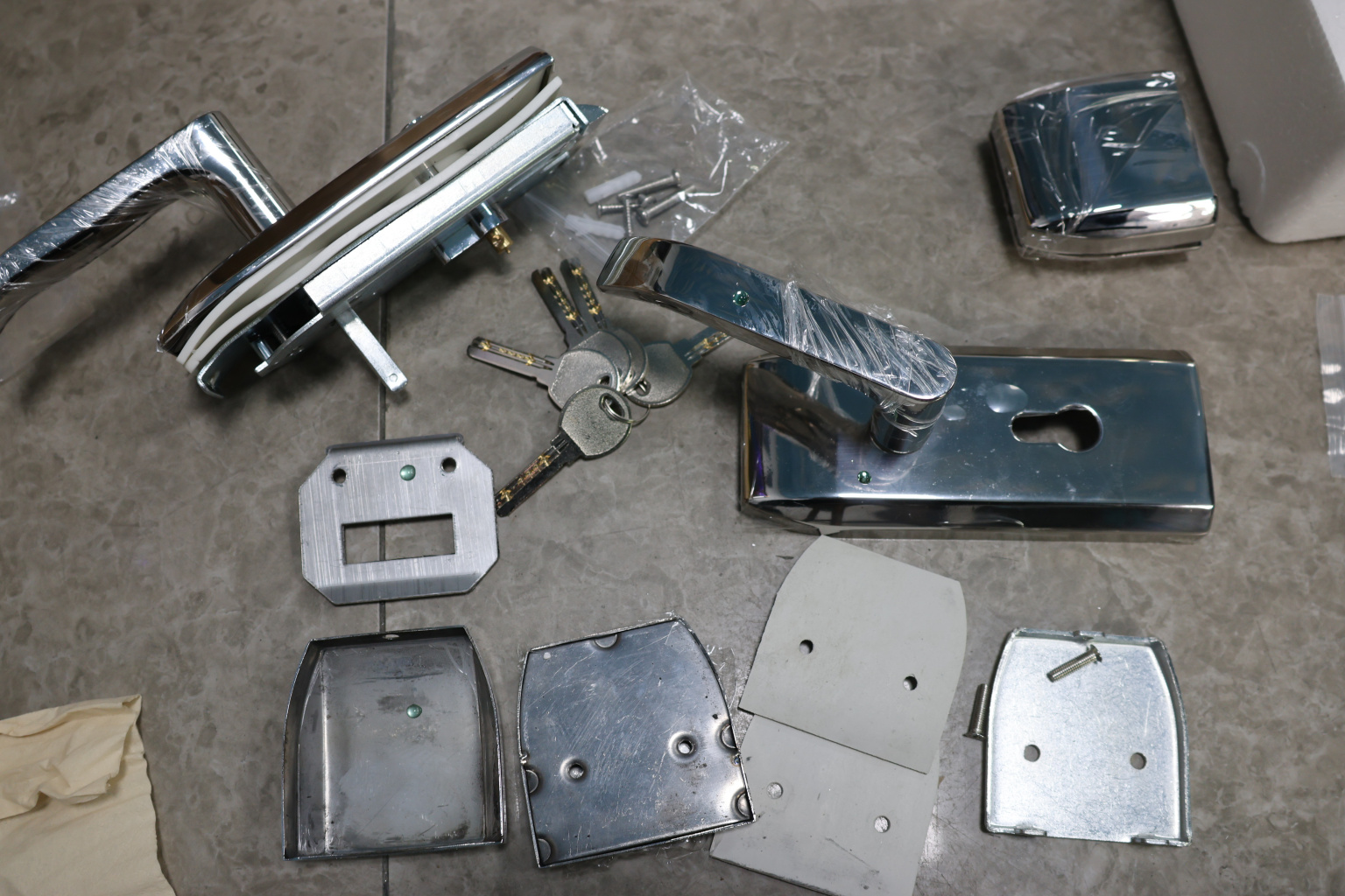 Замок с нажимной ручкой монтируется на стеклянную дверь, толщина стекла 8-12 мм.
