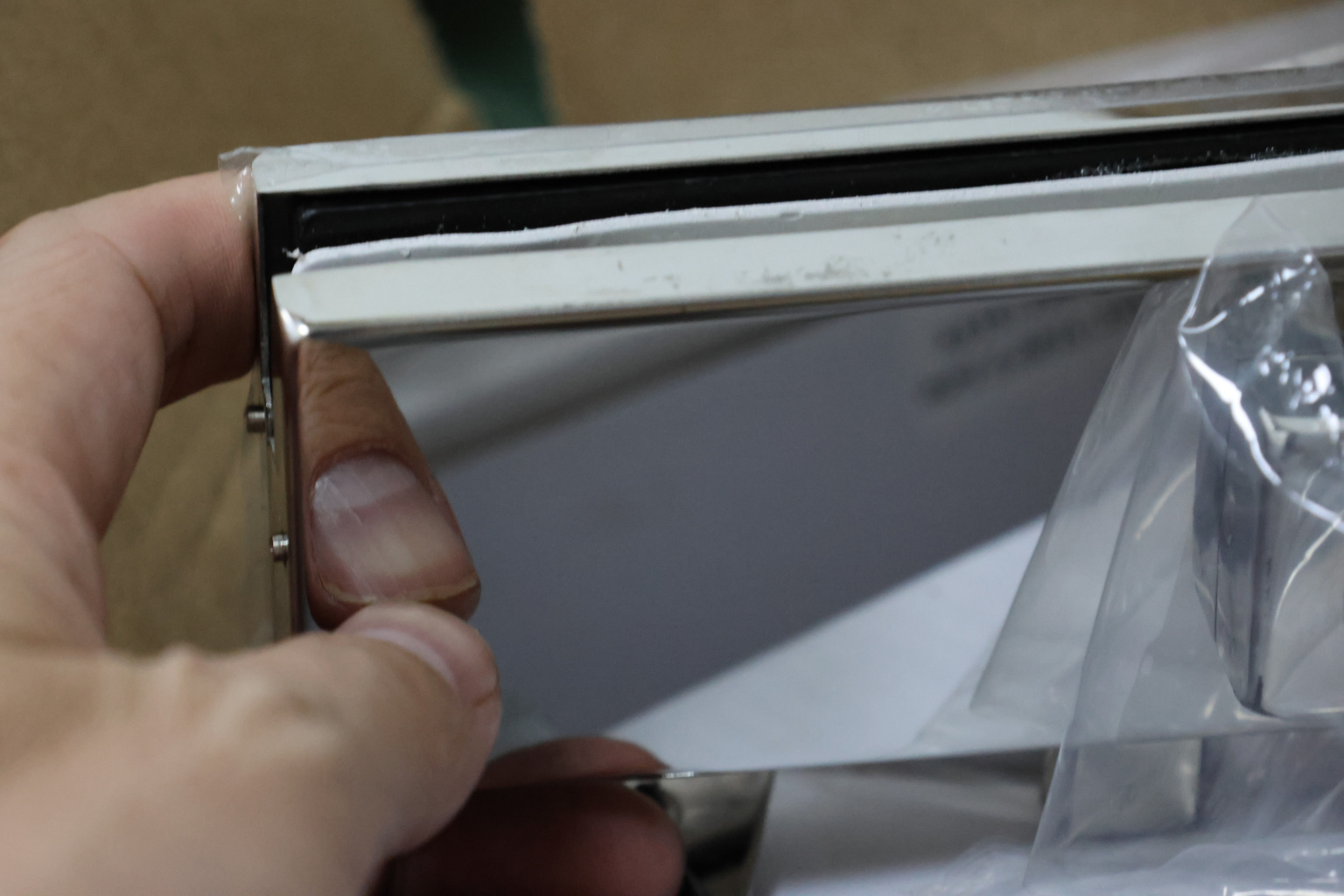 Сбоку нажимаем на крепления крышек и снимаем. Отвинчиваем винты, и фиксируем замок в подготовленный вырез в стекле. Далее закручиваем и фиксируем обратно крышки. Ответную часть крепим под замком с пробуренным отверстием под ригель.
