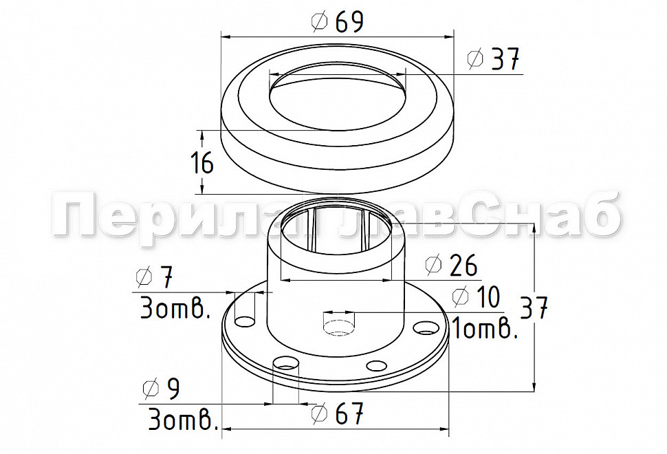 Деталь для крепления стоек из трубы Ø25.4 мм. Фиксируют через саморез сквозь лепестки основания цанги или подваривают.