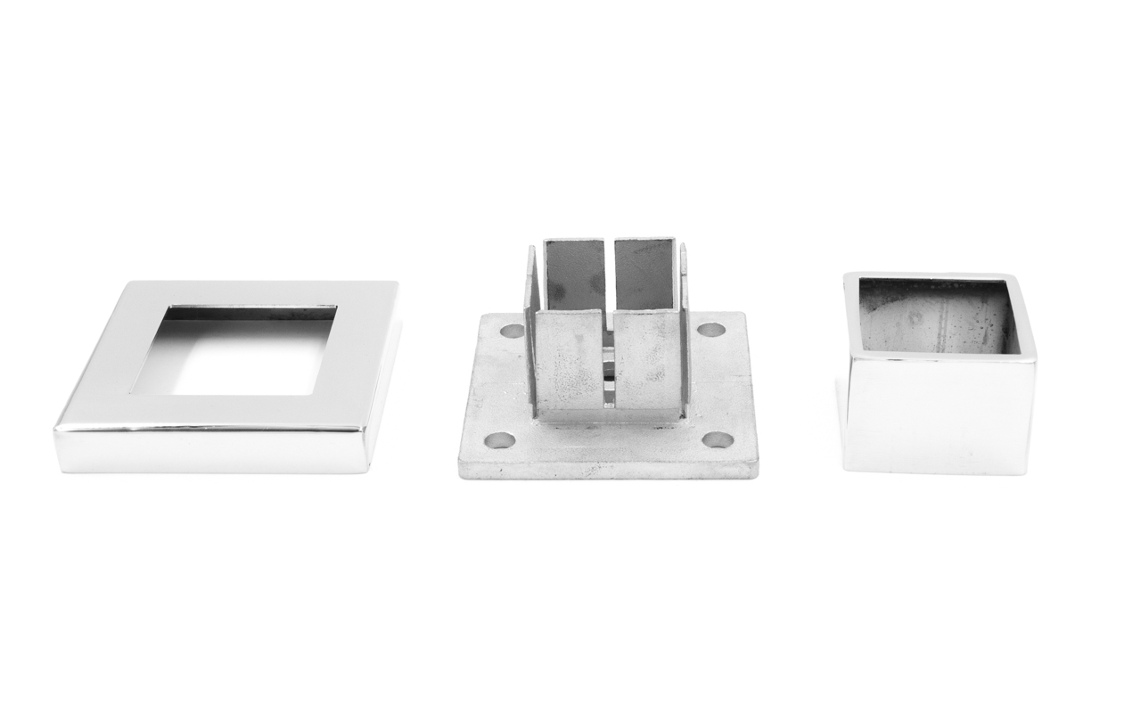 Цанга для стойки 40х40мм, под анкер 8 мм или на 4 анкера М8. Для надежной установки на деревянную ступень, плитку, бетон