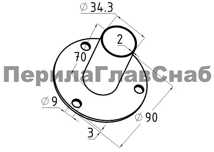 Деталь для крепления стойки из трубы Ø38.1 мм (k819, k849). Основание закрывается декоративной крышкой k201.