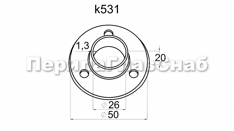 Фланец для трубы Ø50.8 мм, литой, полированный под 3 самореза 4.8 мм (AISI 304) k022