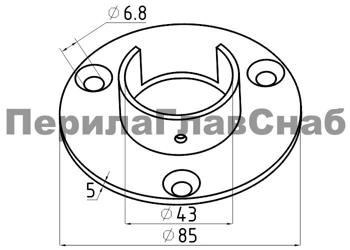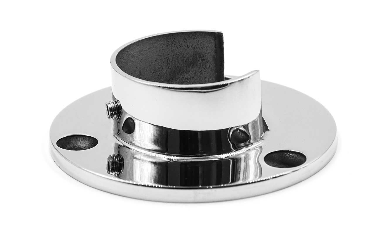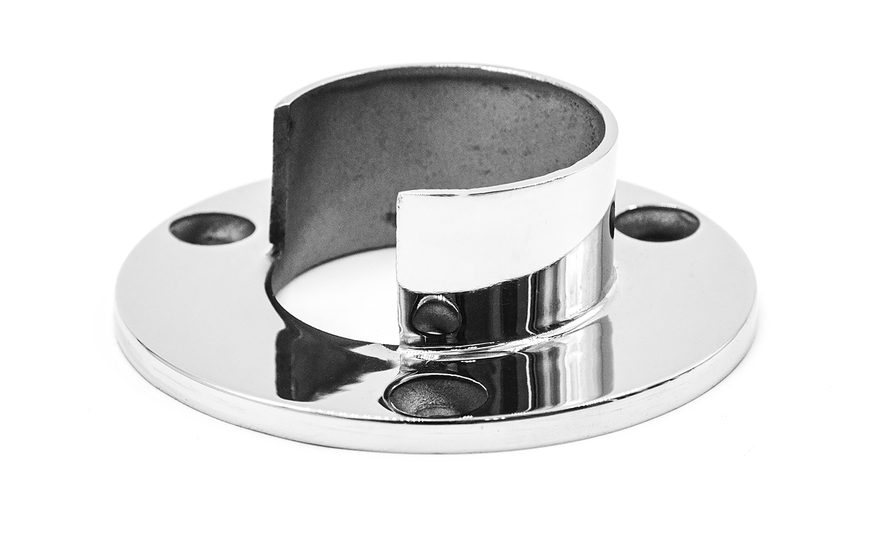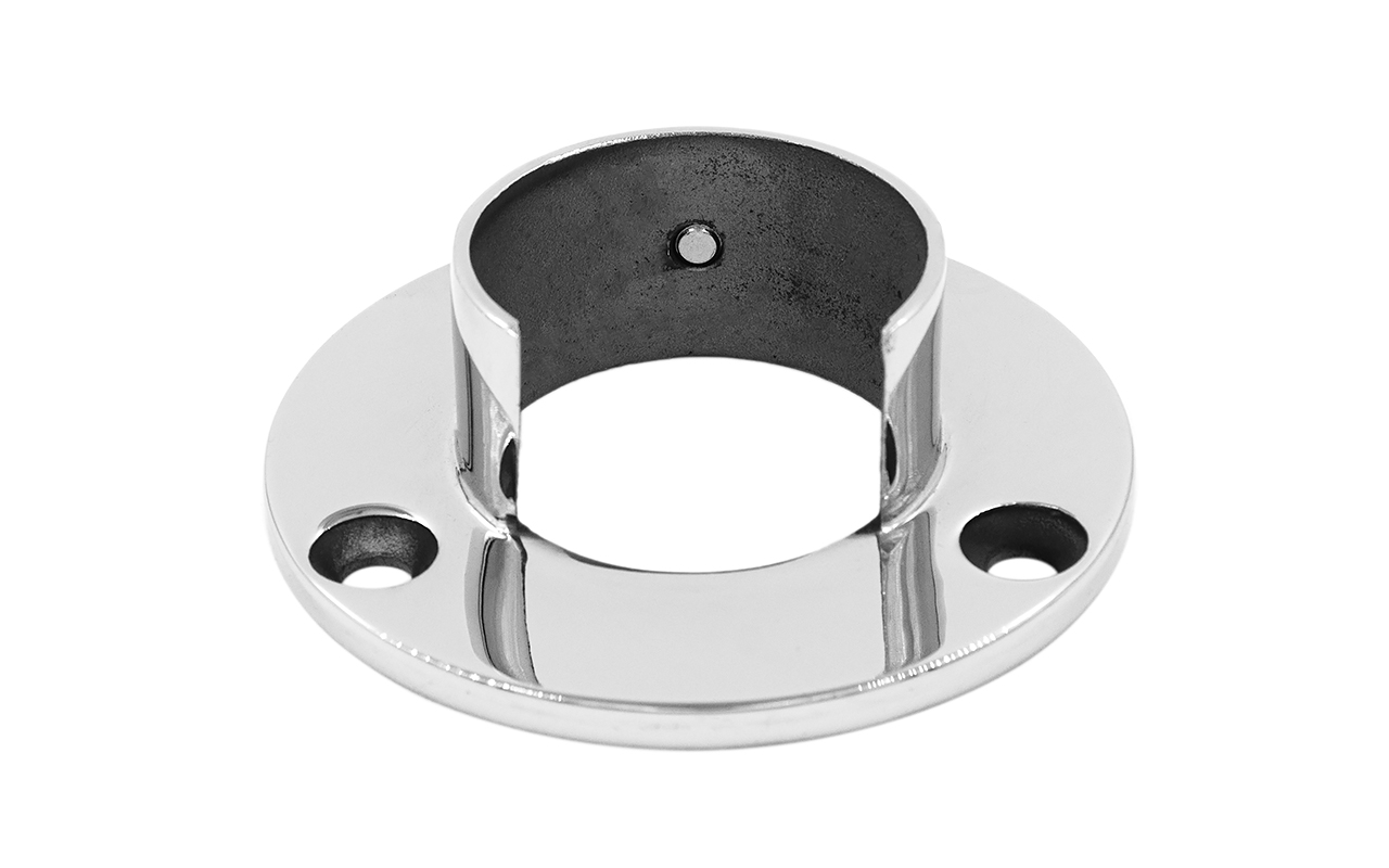 Фланец настенный, для поручня Ø42.4 мм, с пазом 24х24 мм под стекло, полированный
