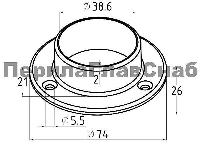 Фланец штампованный, для трубы Ø38.1 мм, полированный, внешний диаметр Ø76 мм, толщина 2 мм (AISI 304) k533 купить в Челябинске