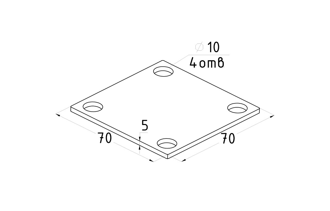 Фланец стойки 71х71х5 (4.3). Марка стали - AISI - 304, 4 отв. М10