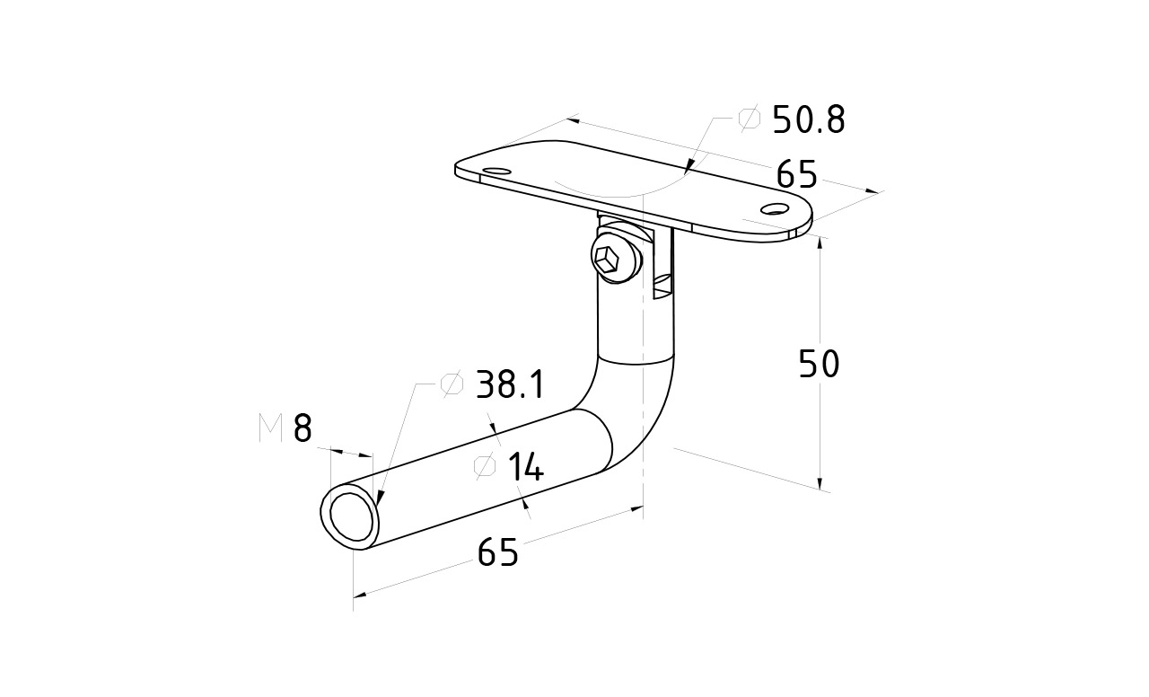 Боковой держатель поручня выносной, с регулируемым ложе под поручень Ø50.8 мм, резьба внутренняя, М8