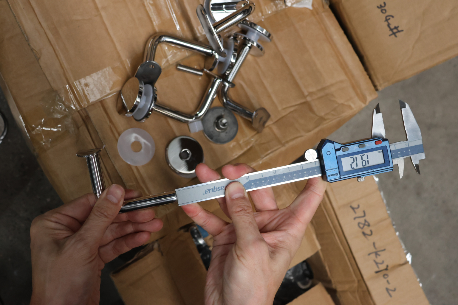 Для установки бокового держателя в стекле сверлится отверстие Ø17 мм, затем пристенок фиксируется затяжной гайкой в торце фланца. А сам поручень приваривается к загнутому наконечнику фитинга.