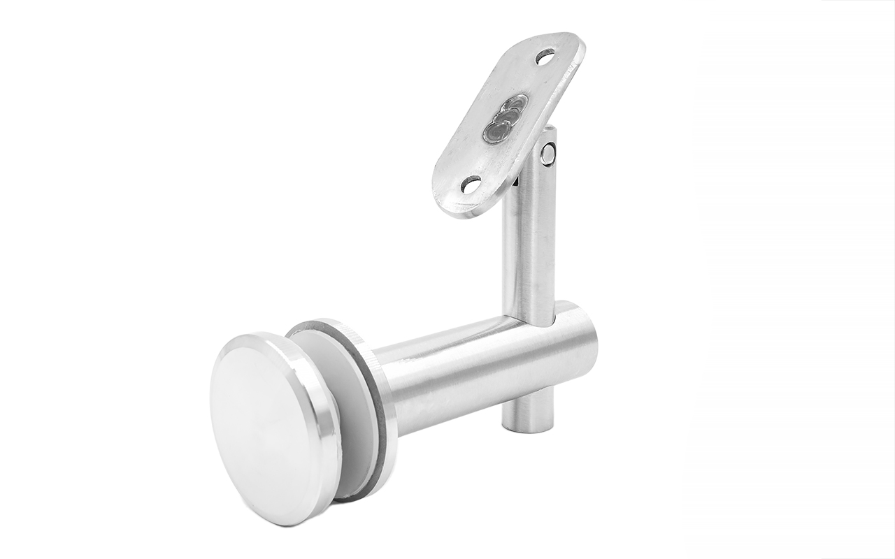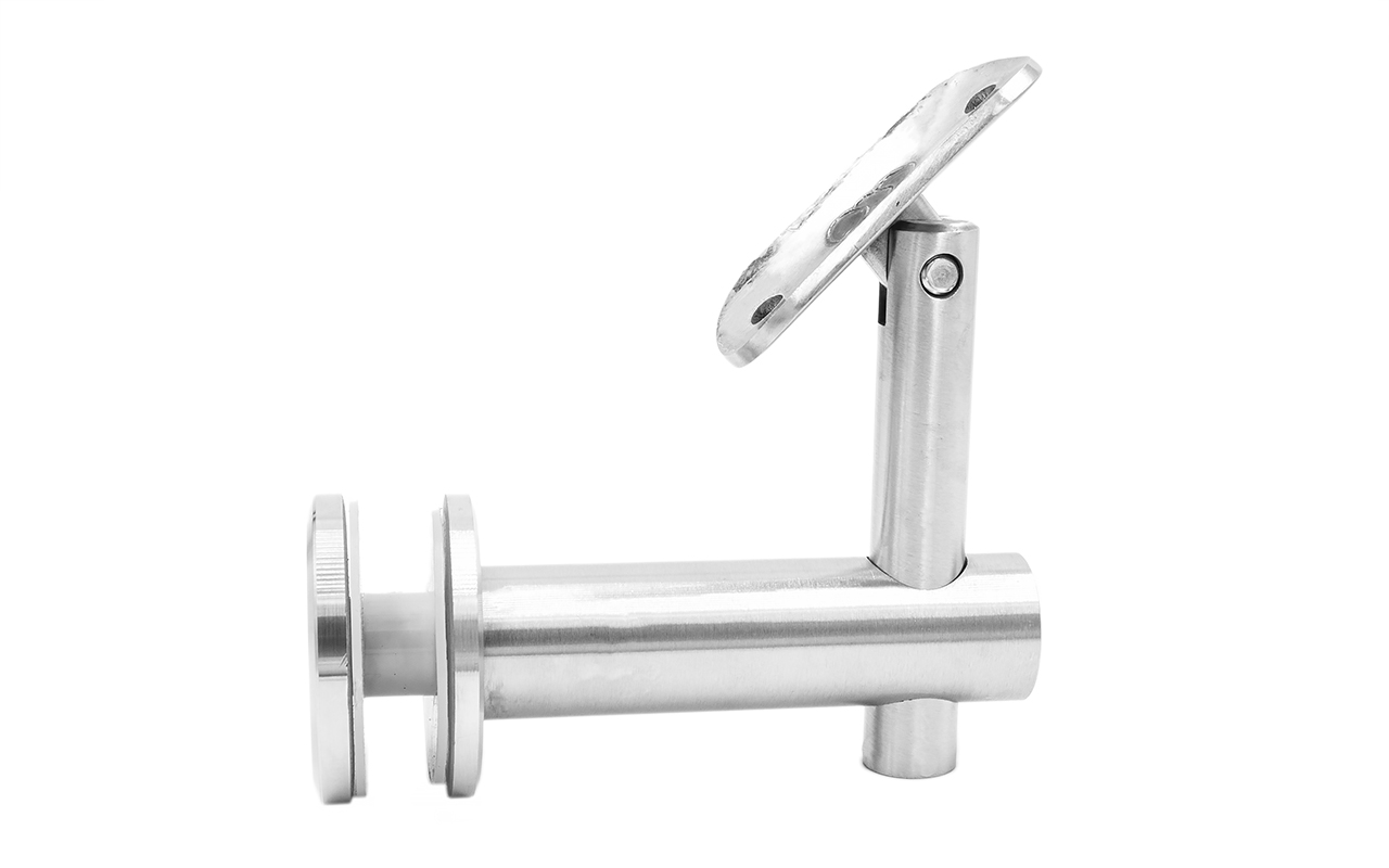 Выносной держатель поручня на стекло 8-20 мм, регулируемый, с ложементом, шлифованный, (AISI 304) k241