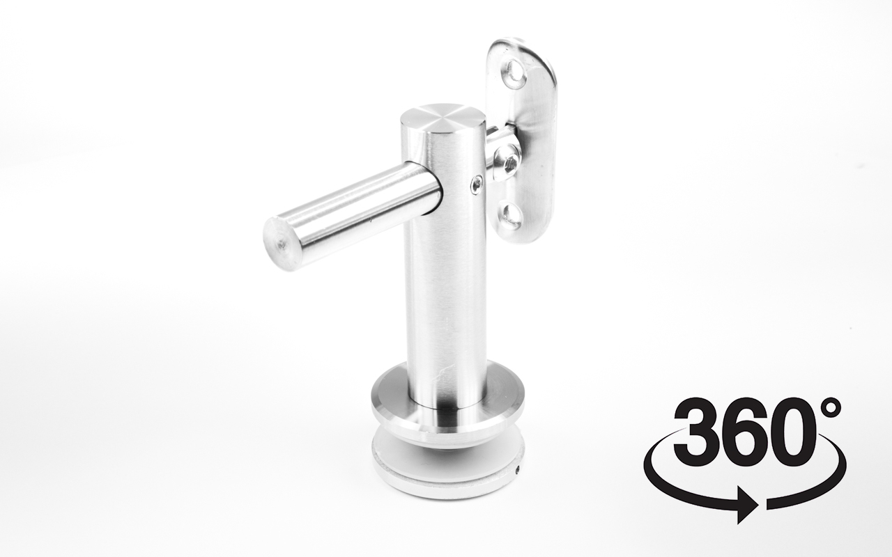 Выносной держатель поручня на стекло 8-20 мм. Деталь регулируемая, шлифованная, с ложементом под трубу Ø50.8 мм. Вырез в стекле Ø17-18 мм. Марка стали - AISI 304.