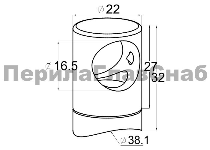 Предназначен для крепления нержавеющего ригеля Ø16 (тетивы, струны) к стойке диаметром 38.1 мм ограждения с ригелями.
